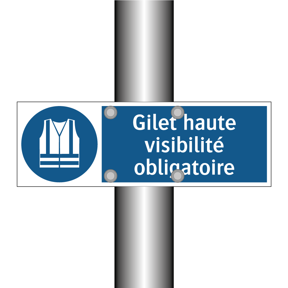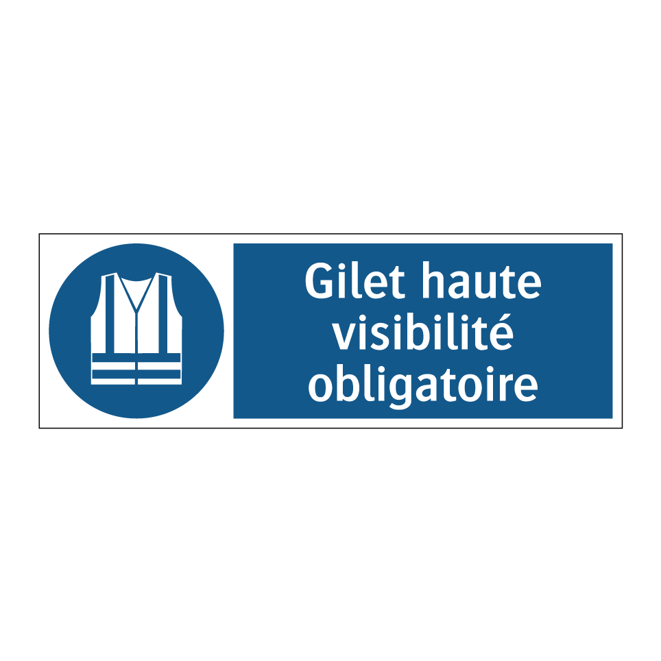 Panneau d'obligation avec le texte : "Gilet haute visibilité obligatoire"