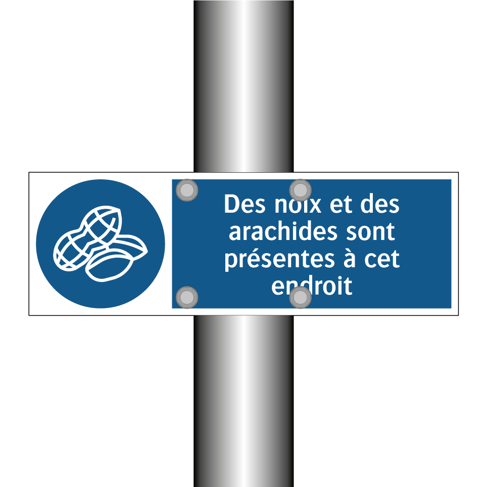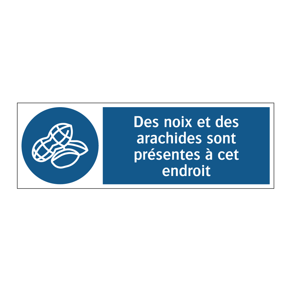 Panneau d'obligation avec le texte : "Des noix et des arachides sont présentes à cet endroit"