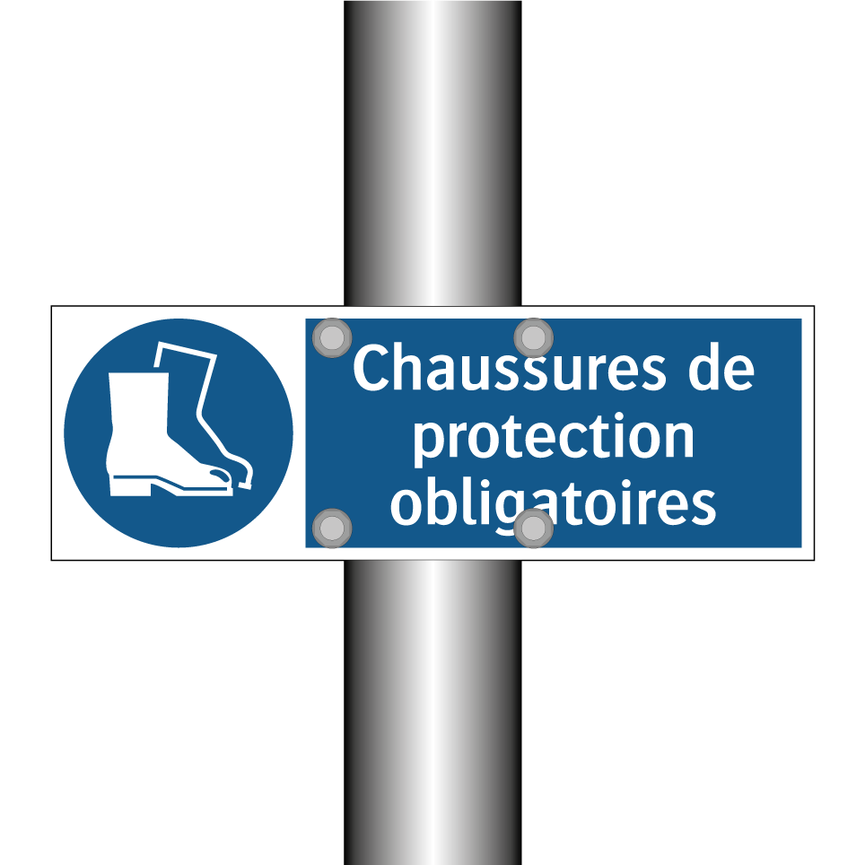 Panneau d'obligation avec le texte : "Chaussures de protection obligatoires"