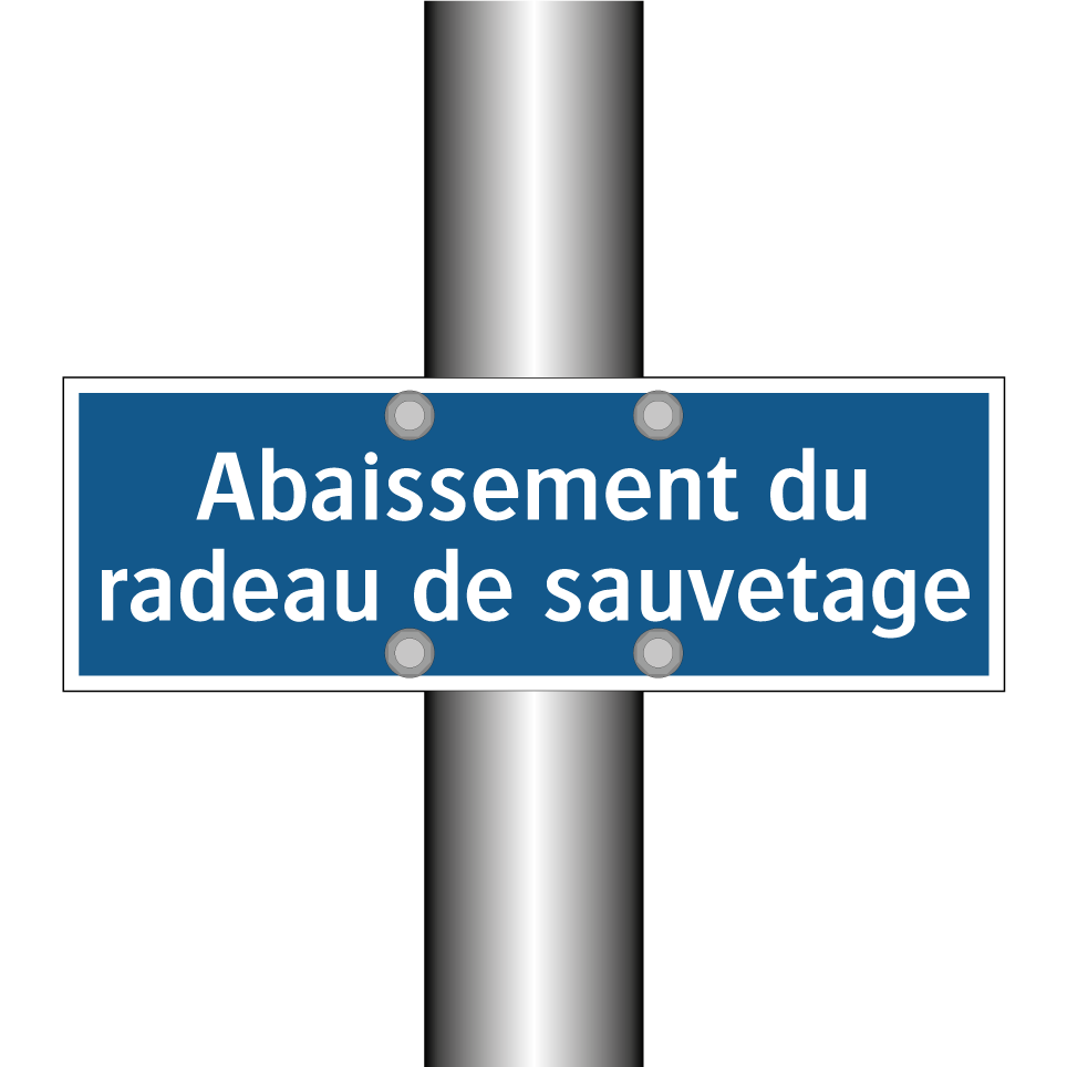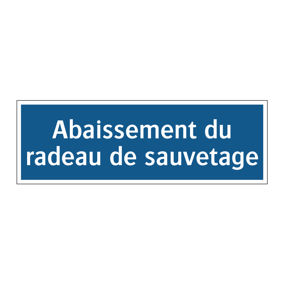 Panneau d'obligation avec le texte : "Abaissement du radeau de sauvetage"