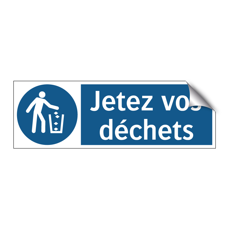 Panneau d'obligation avec le texte : "Jetez vos déchets"