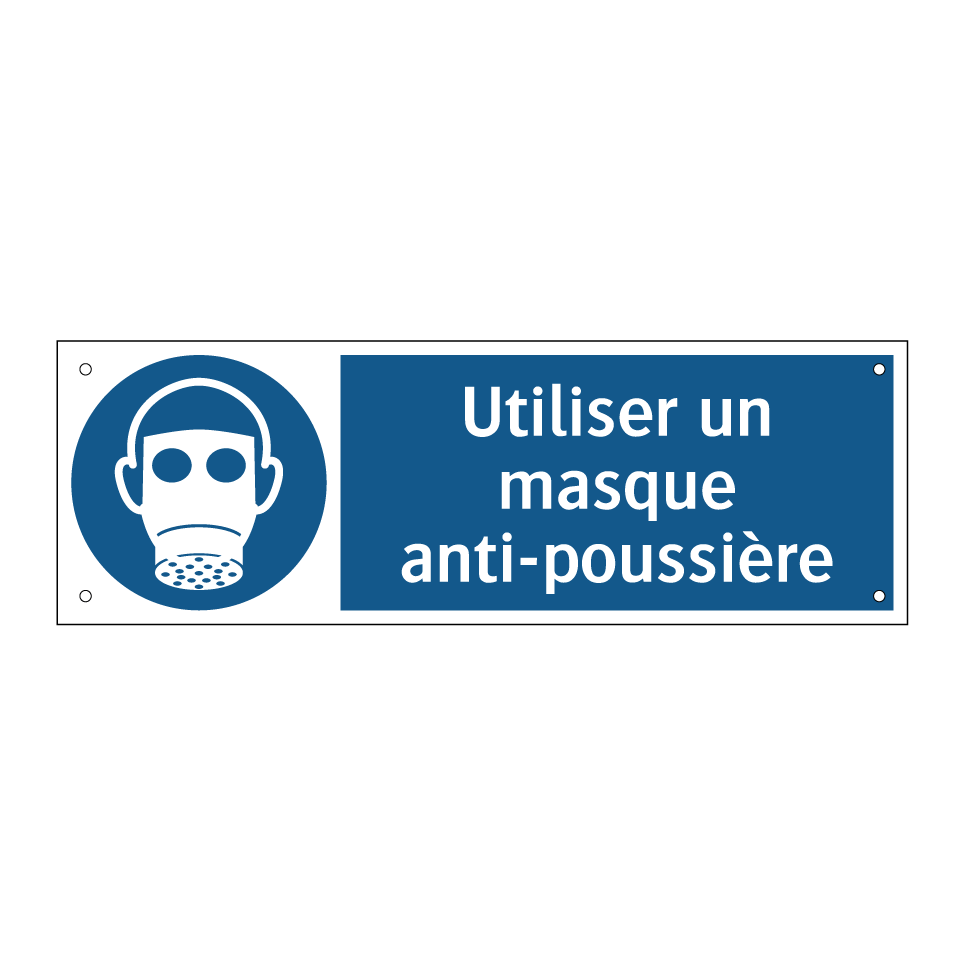 Panneau d'obligation avec le texte : "Utiliser un masque anti-poussière"