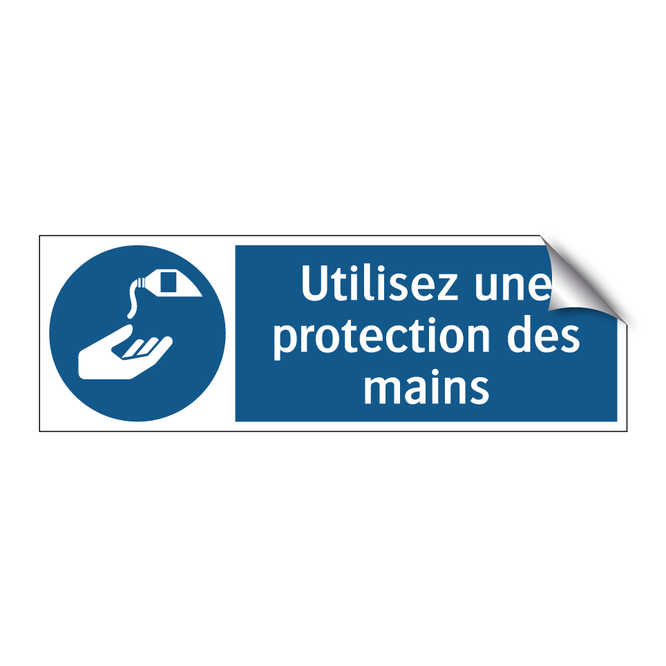 Panneau d'obligation avec le texte : "Utilisez une protection des mains"