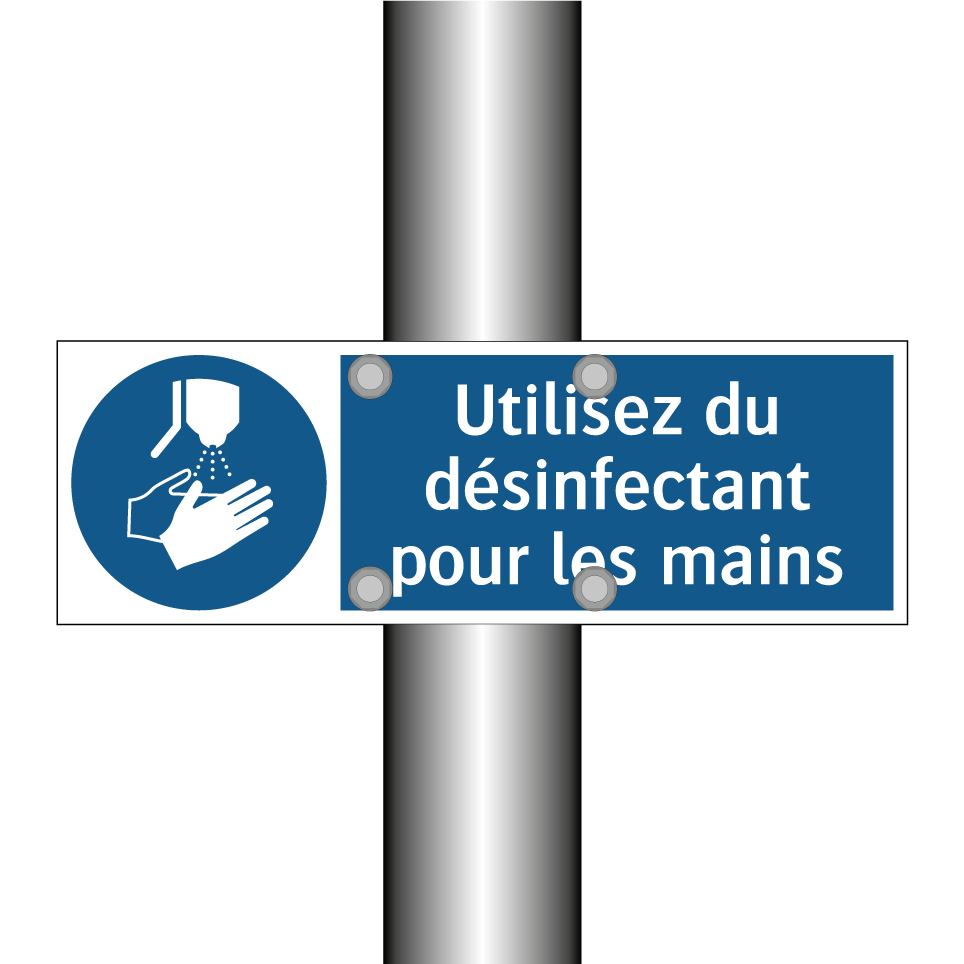 Ce panneau d'obligation est essentiel pour garantir l'hygiène dans les espaces publics et privés. Il est idéal pour être placé à l'entrée des bâtiments, dans les bureaux, les écoles, les hôpitaux, et tout autre lieu où l'hygiène des mains est primordiale. En incitant les visiteurs et le personnel à utiliser un désinfectant pour les mains, ce panneau contribue à réduire la propagation des germes et des bactéries. Sa couleur bleue et son texte blanc, accompagnés d'une symbolique claire, attirent immédiatement l'attention, assurant ainsi que le message est bien compris et respecté. Ce panneau est un outil indispensable pour maintenir un environnement sain et sécurisé.