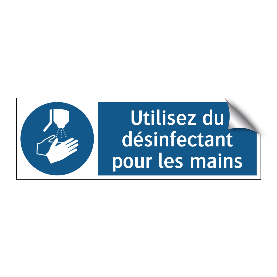 Panneau d'obligation avec le texte : "Utilisez du désinfectant pour les mains"