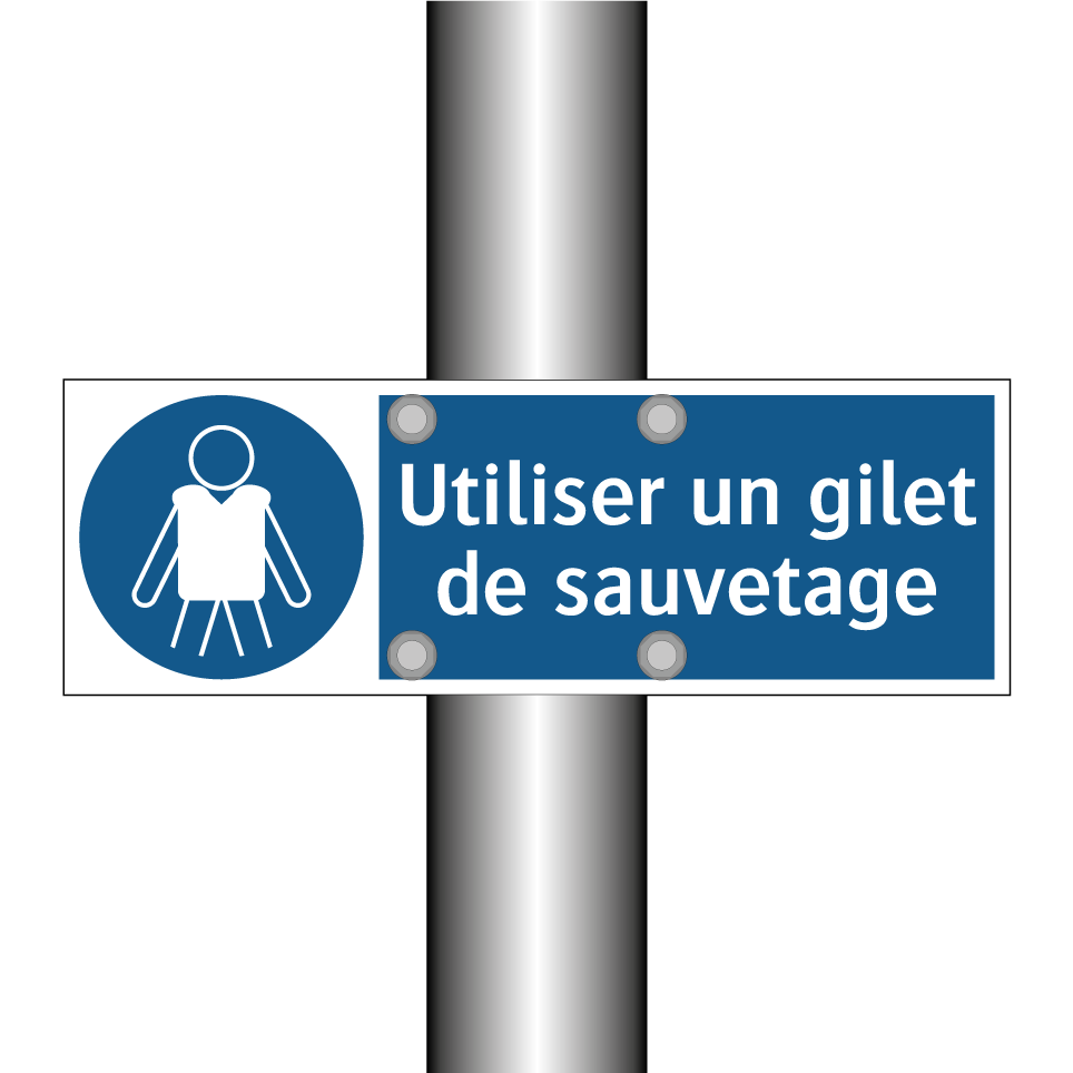 Panneau d'obligation avec le texte : "Utiliser un gilet de sauvetage"