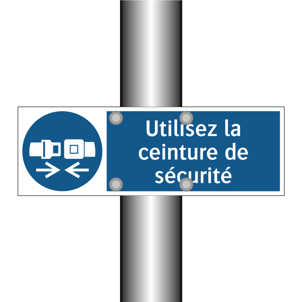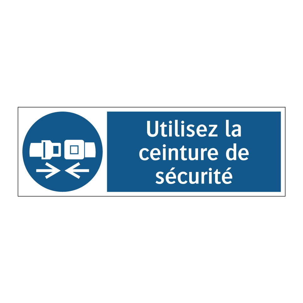 Panneau d'obligation avec le texte : "Utilisez la ceinture de sécurité"