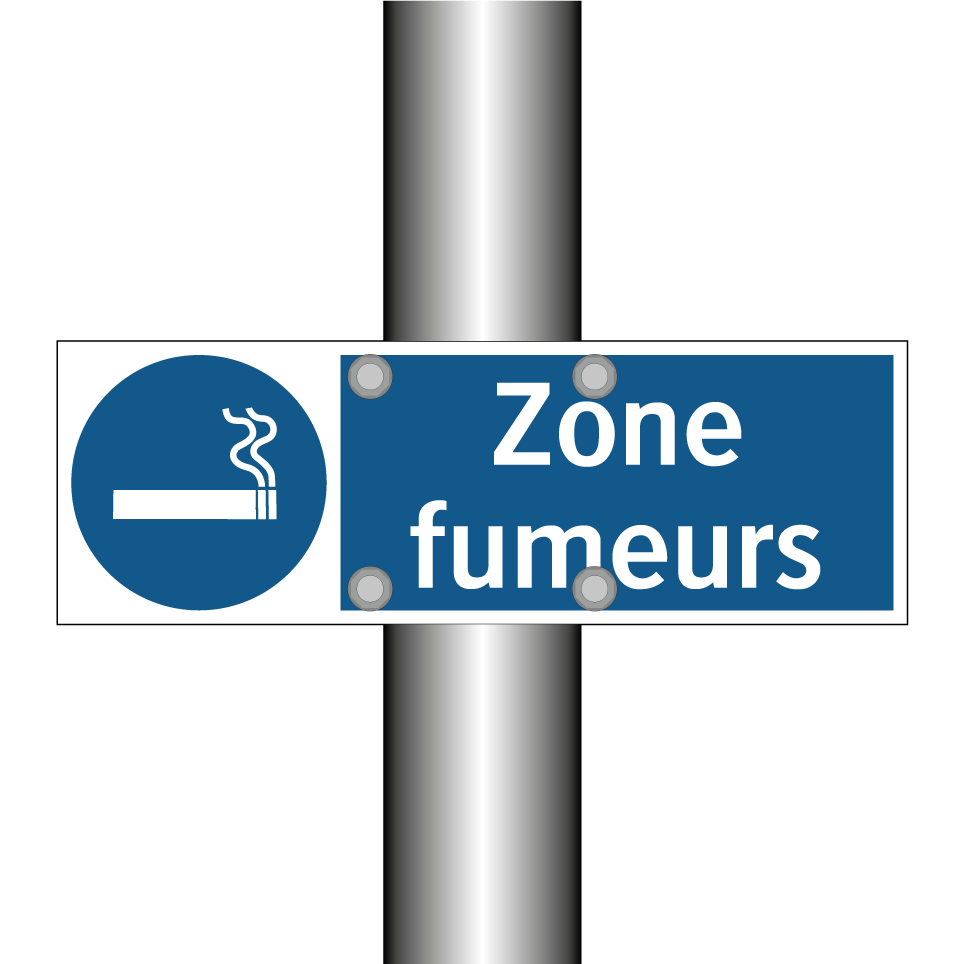 Panneau d'obligation avec le texte : "Zone fumeurs"