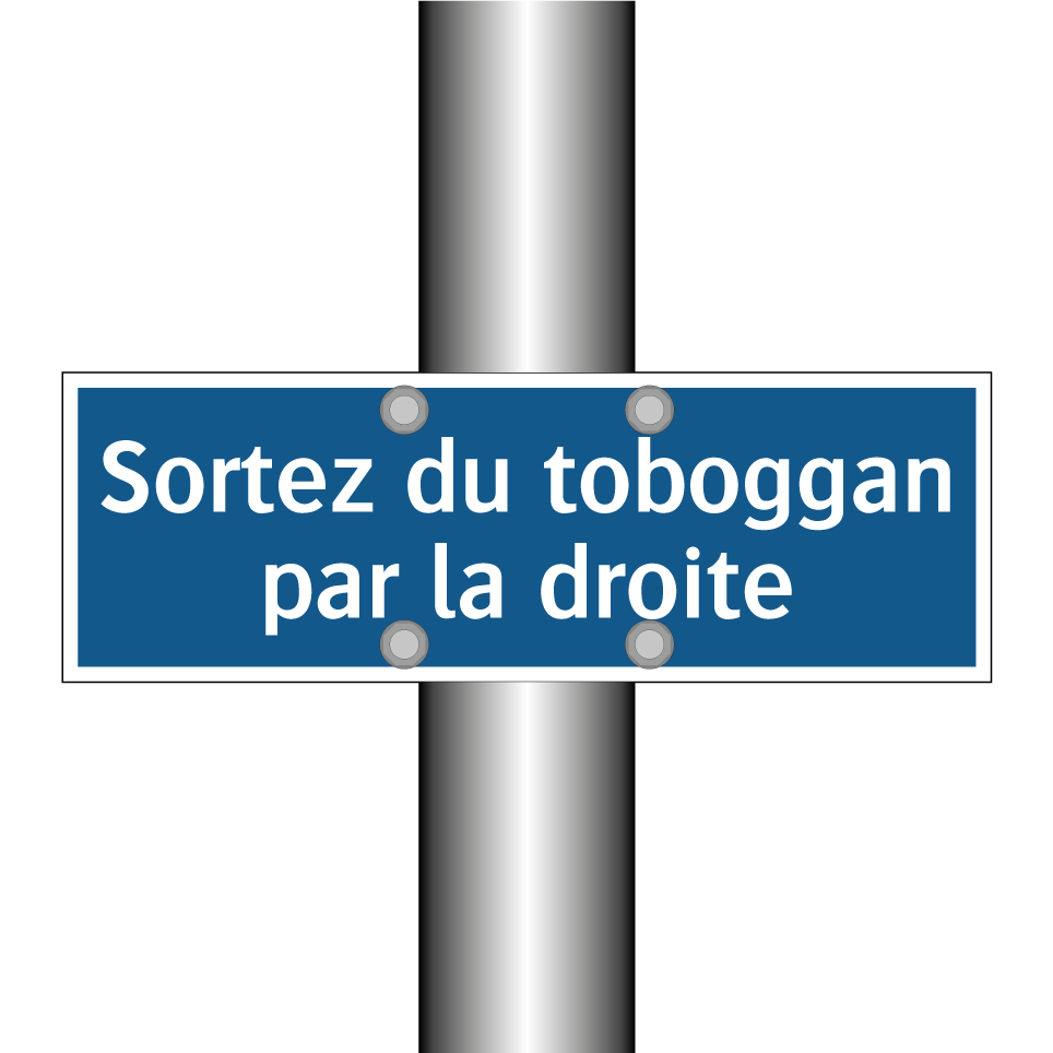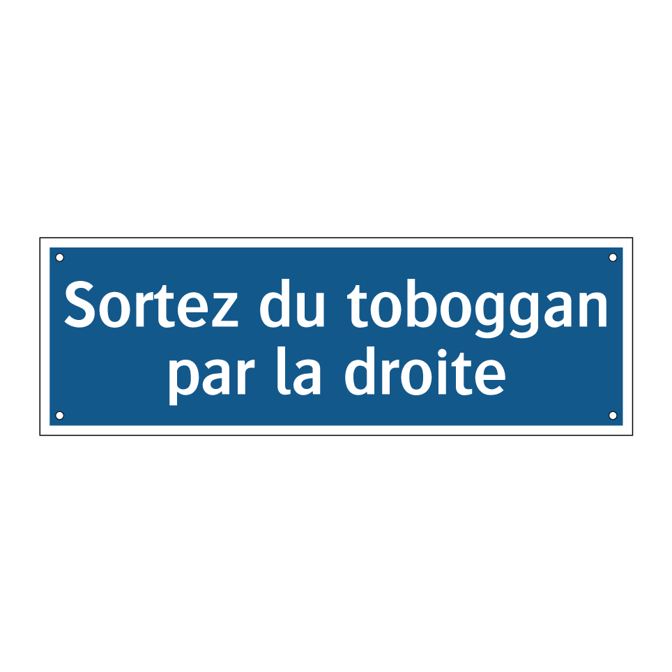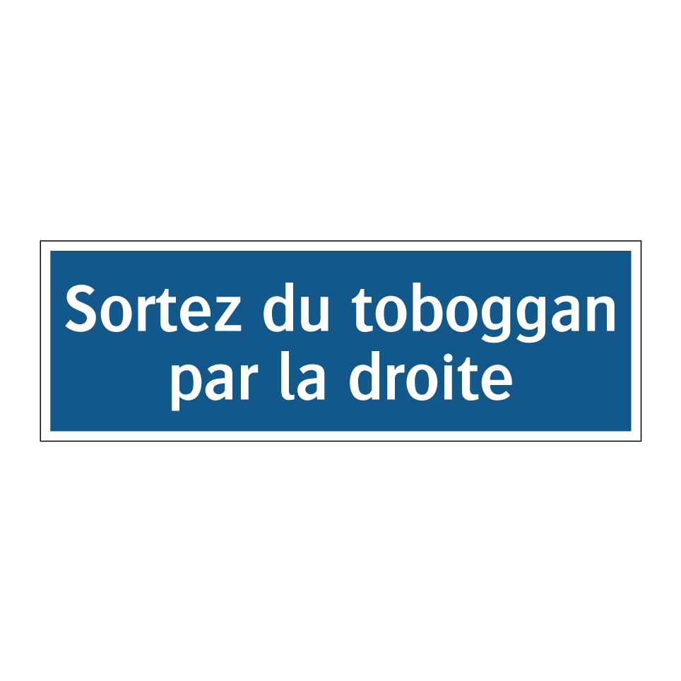 Panneau d'obligation avec le texte : "Sortez du toboggan par la droite"