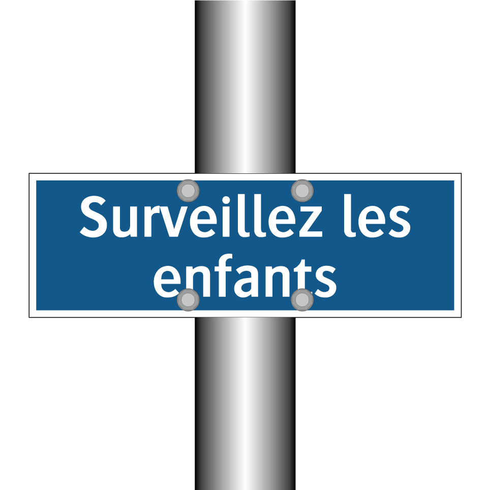 Panneau d'obligation avec le texte : "Surveillez les enfants"