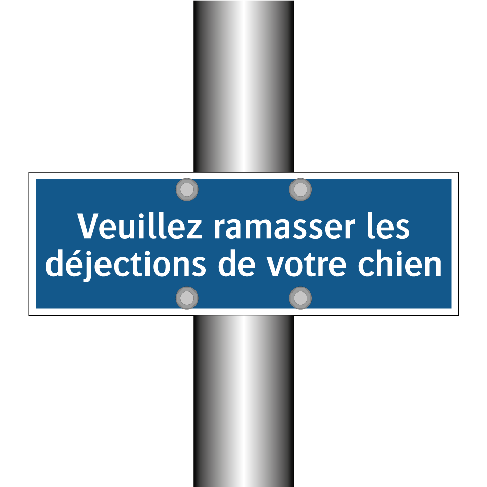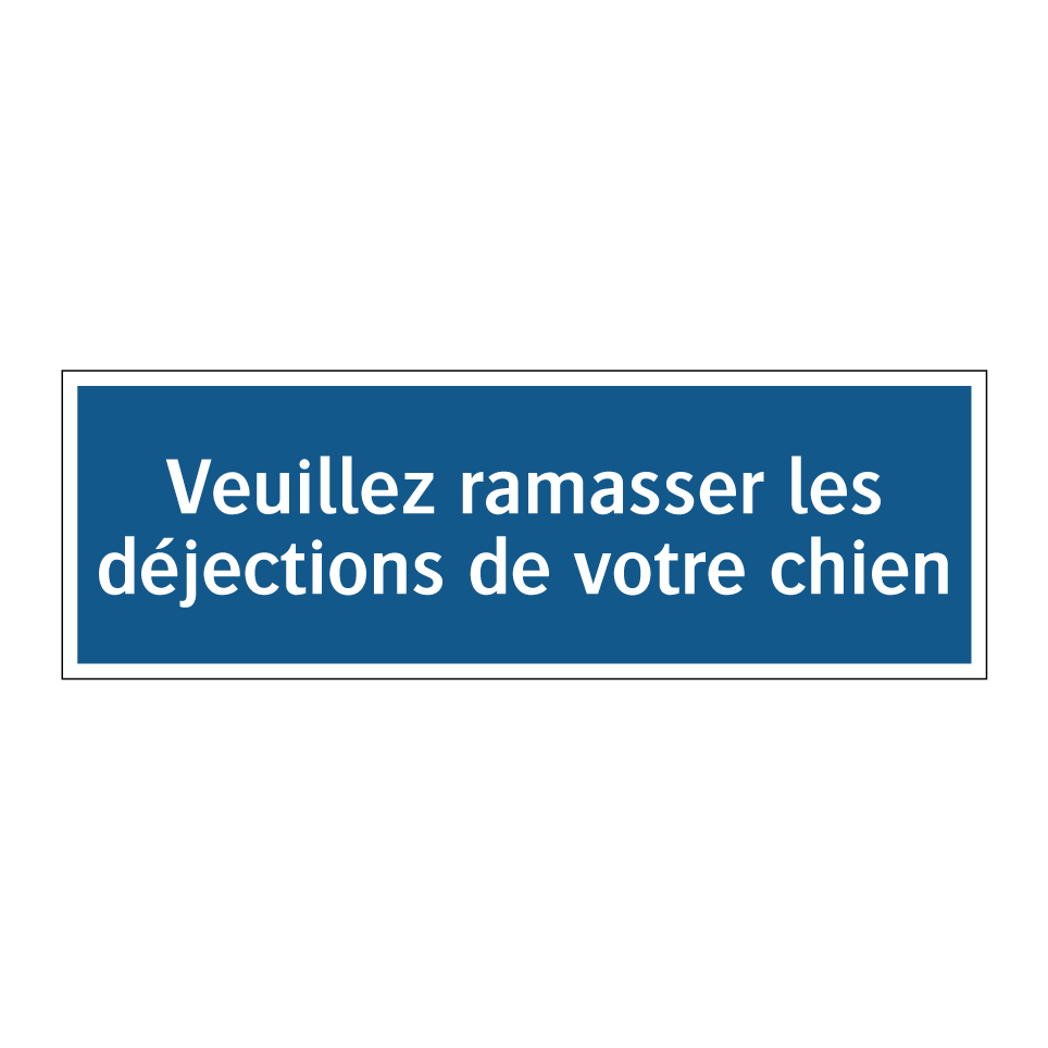 Panneau d'obligation avec le texte : "Veuillez ramasser les déjections de votre chien"