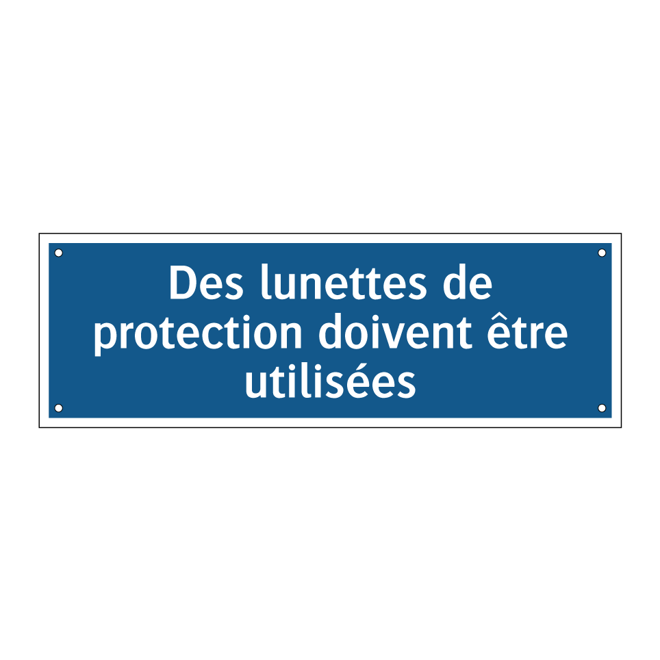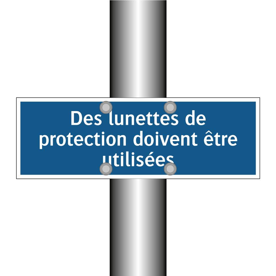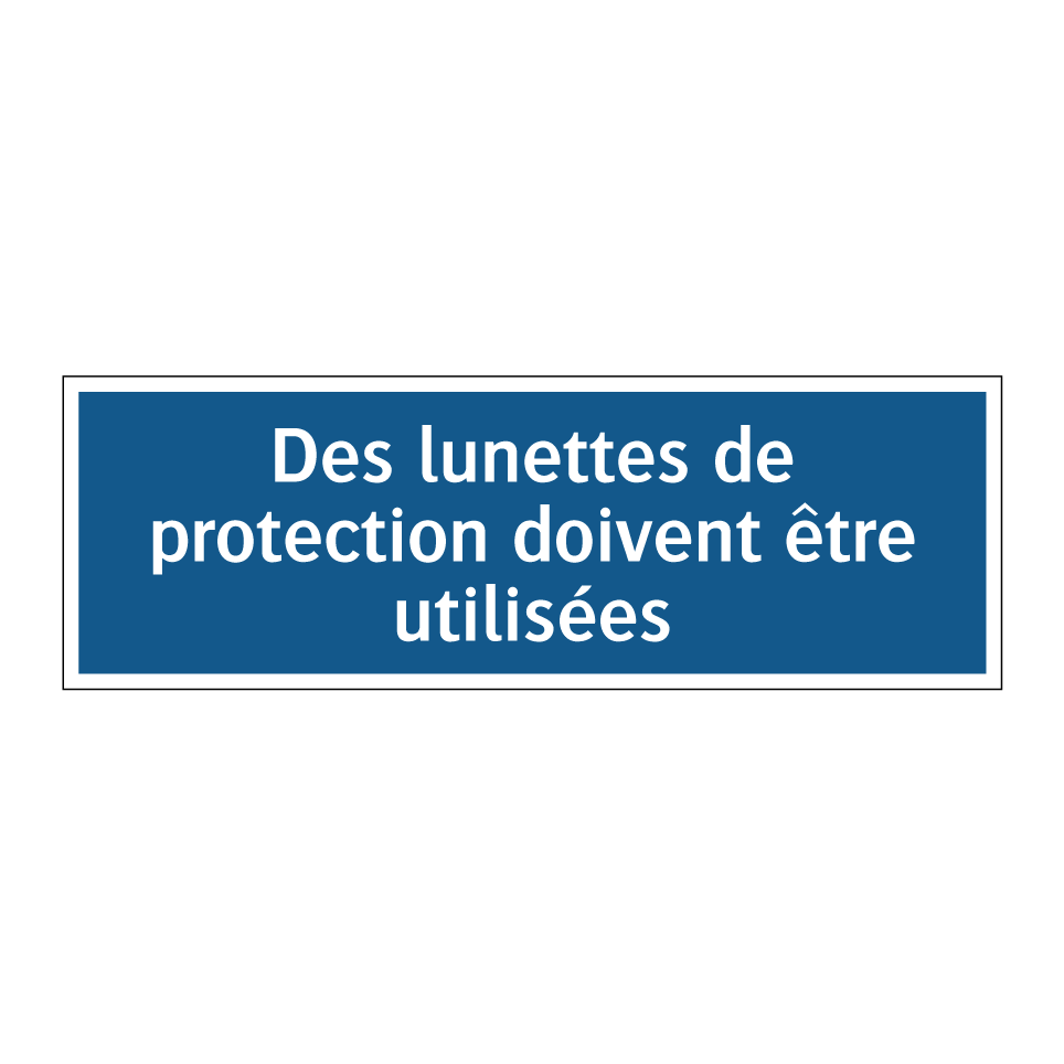 Panneau d'obligation avec le texte : "Des lunettes de protection doivent être utilisées"