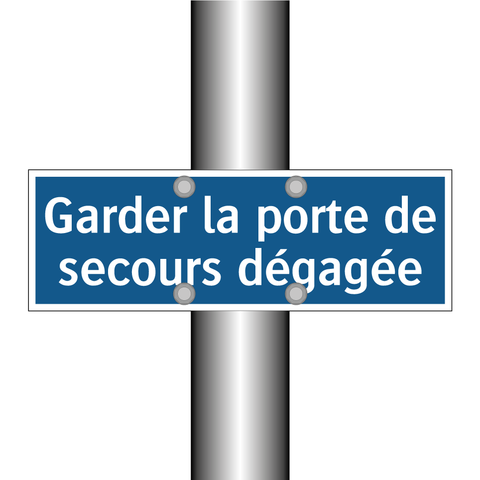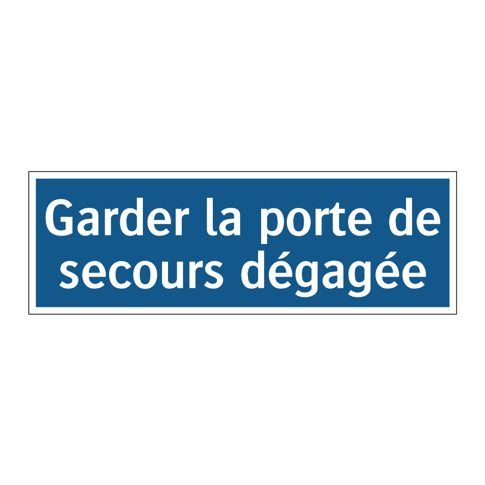 Panneau d'obligation avec le texte : "Garder la porte de secours dégagée"