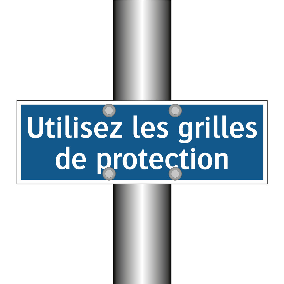 Panneau d'obligation avec le texte : "Utilisez les grilles de protection"