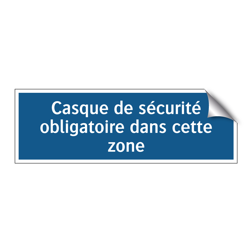 Panneau d'obligation avec le texte : "Casque de sécurité obligatoire dans cette zone"