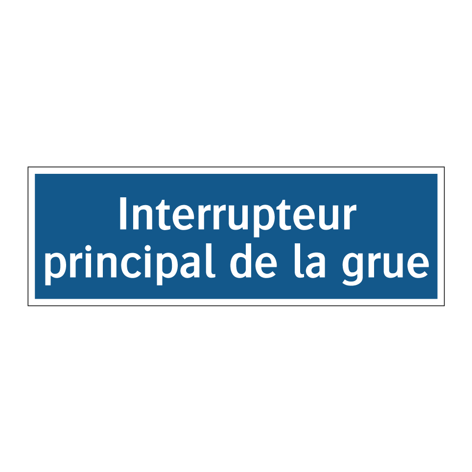 Panneau d'obligation avec le texte : "Interrupteur principal de la grue"