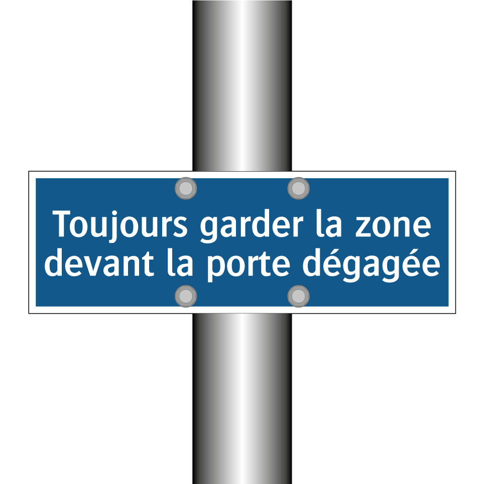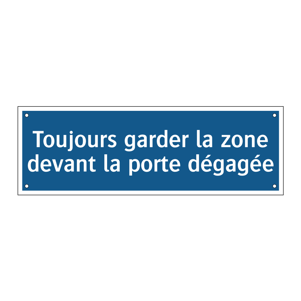 Panneau d'obligation avec le texte : "Toujours garder la zone devant la porte dégagée"