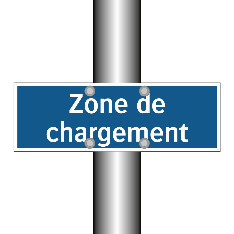 Panneau d'obligation avec le texte : "Zone de chargement"