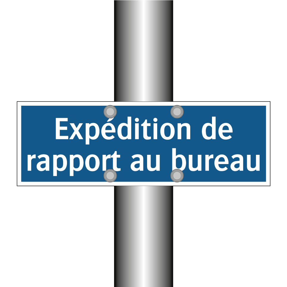 Panneau d'obligation avec le texte : "Expédition de rapport au bureau"