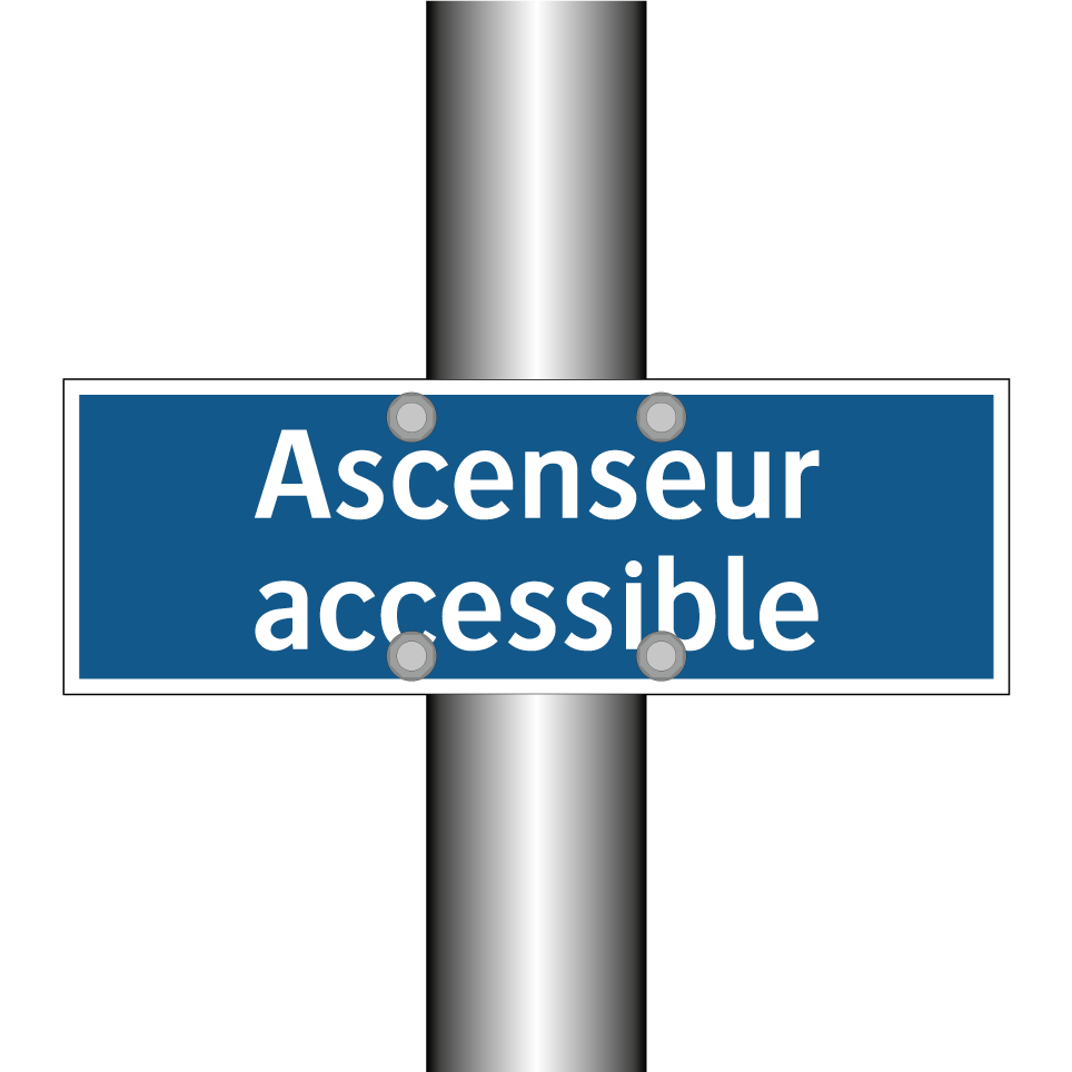 Panneau d'obligation avec le texte : "Ascenseur accessible"