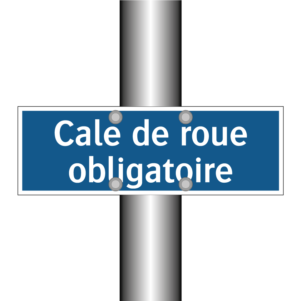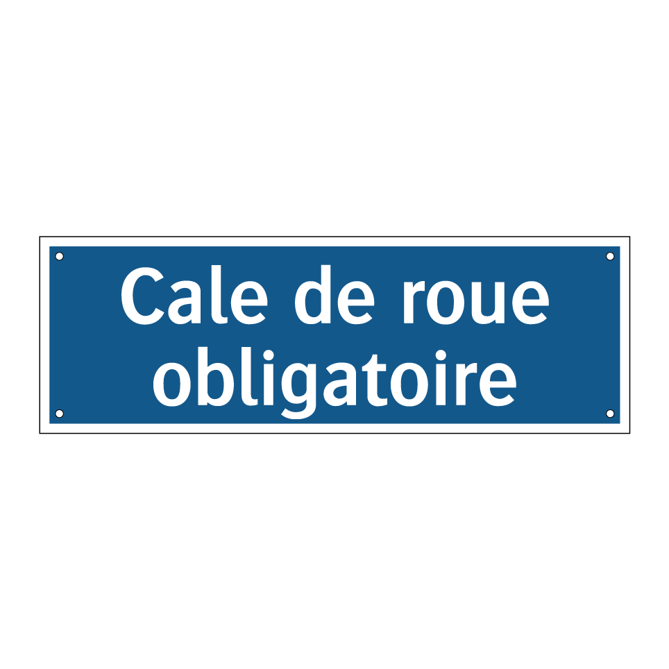 Panneau d'obligation avec le texte : "Cale de roue obligatoire"