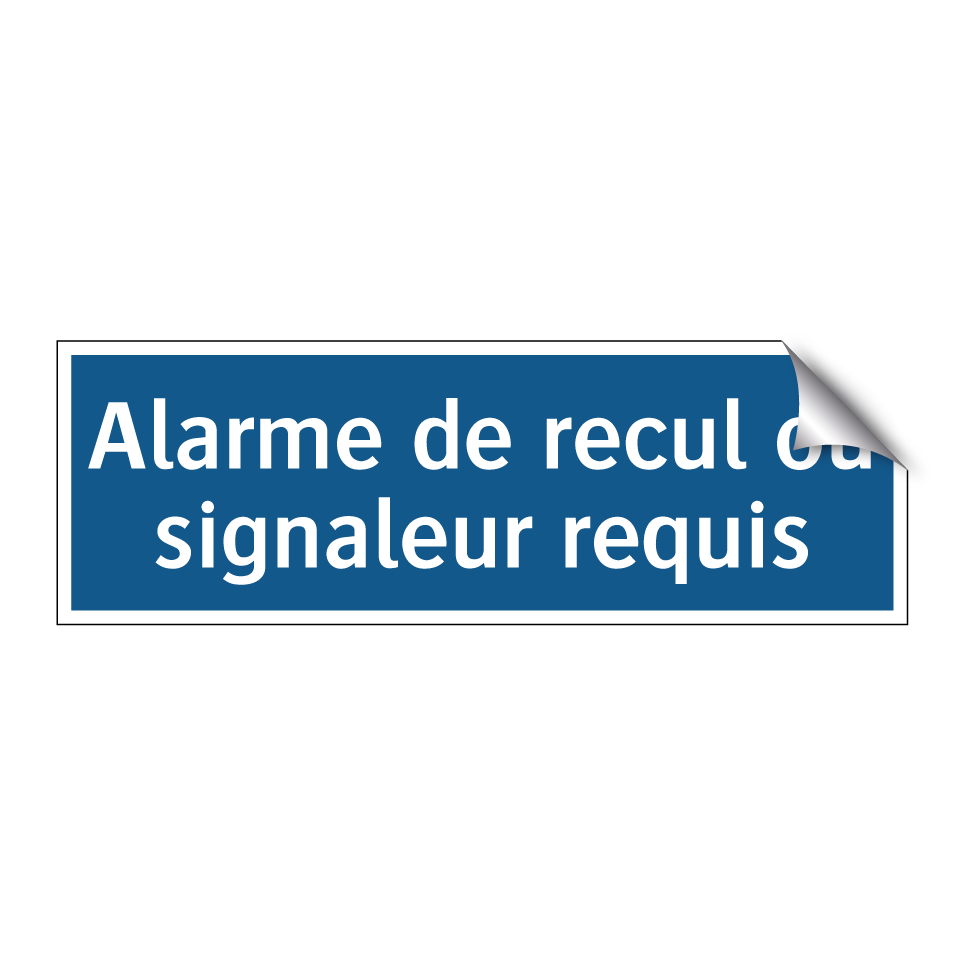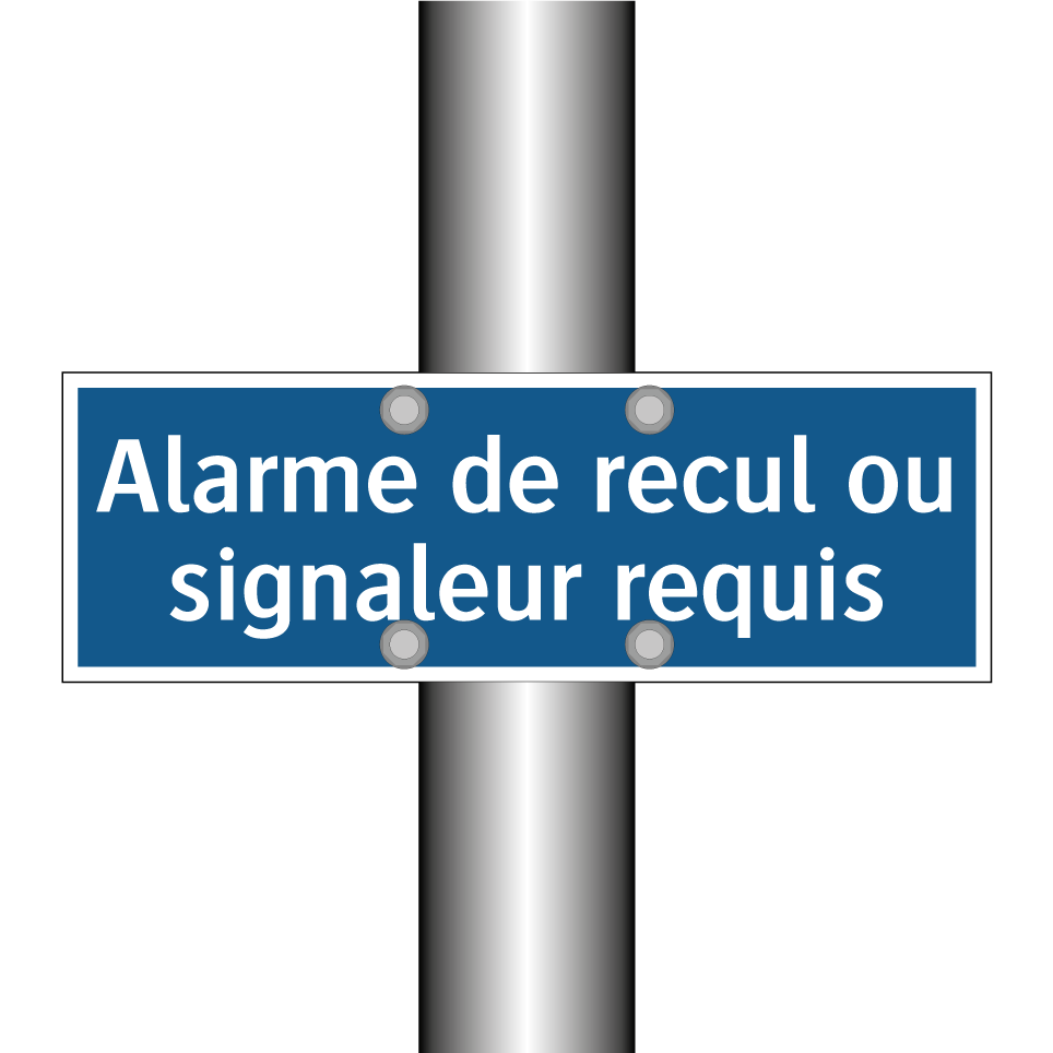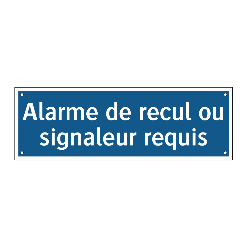 Panneau d'obligation avec le texte : "Alarme de recul ou signaleur requis"