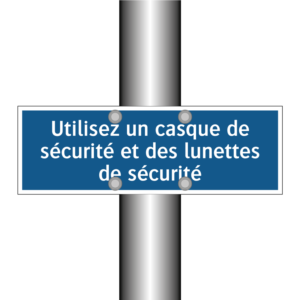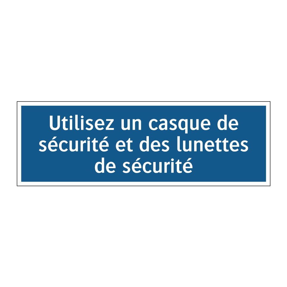 Panneau d'obligation avec le texte : "Utilisez un casque de sécurité et des lunettes de sécurité"