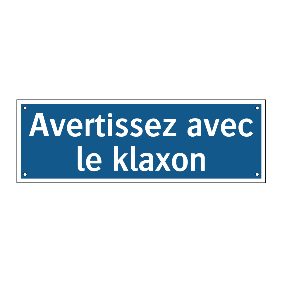 Panneau d'obligation avec le texte : "Avertissez avec le klaxon"