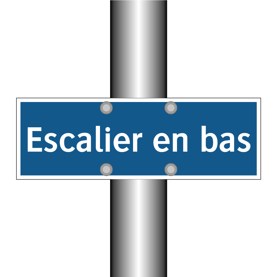 Panneau d'obligation avec le texte : "Escalier en bas"