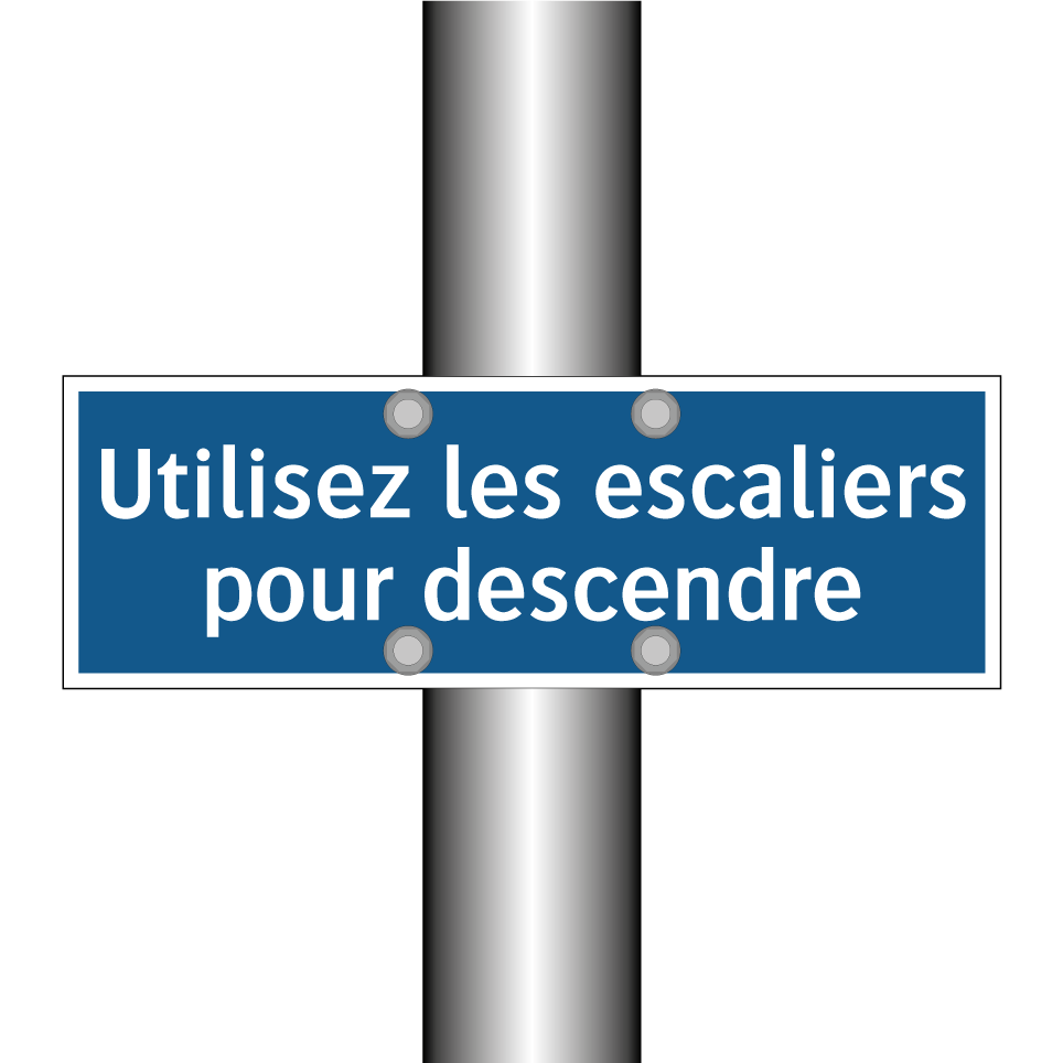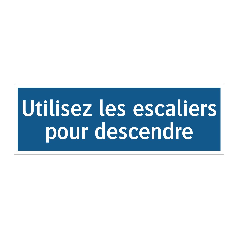Panneau d'obligation avec le texte : "Utilisez les escaliers pour descendre"