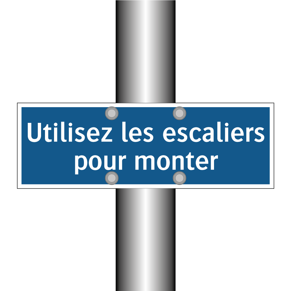 Panneau d'obligation avec le texte : "Utilisez les escaliers pour monter"