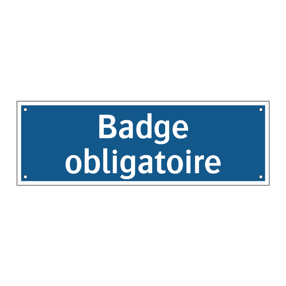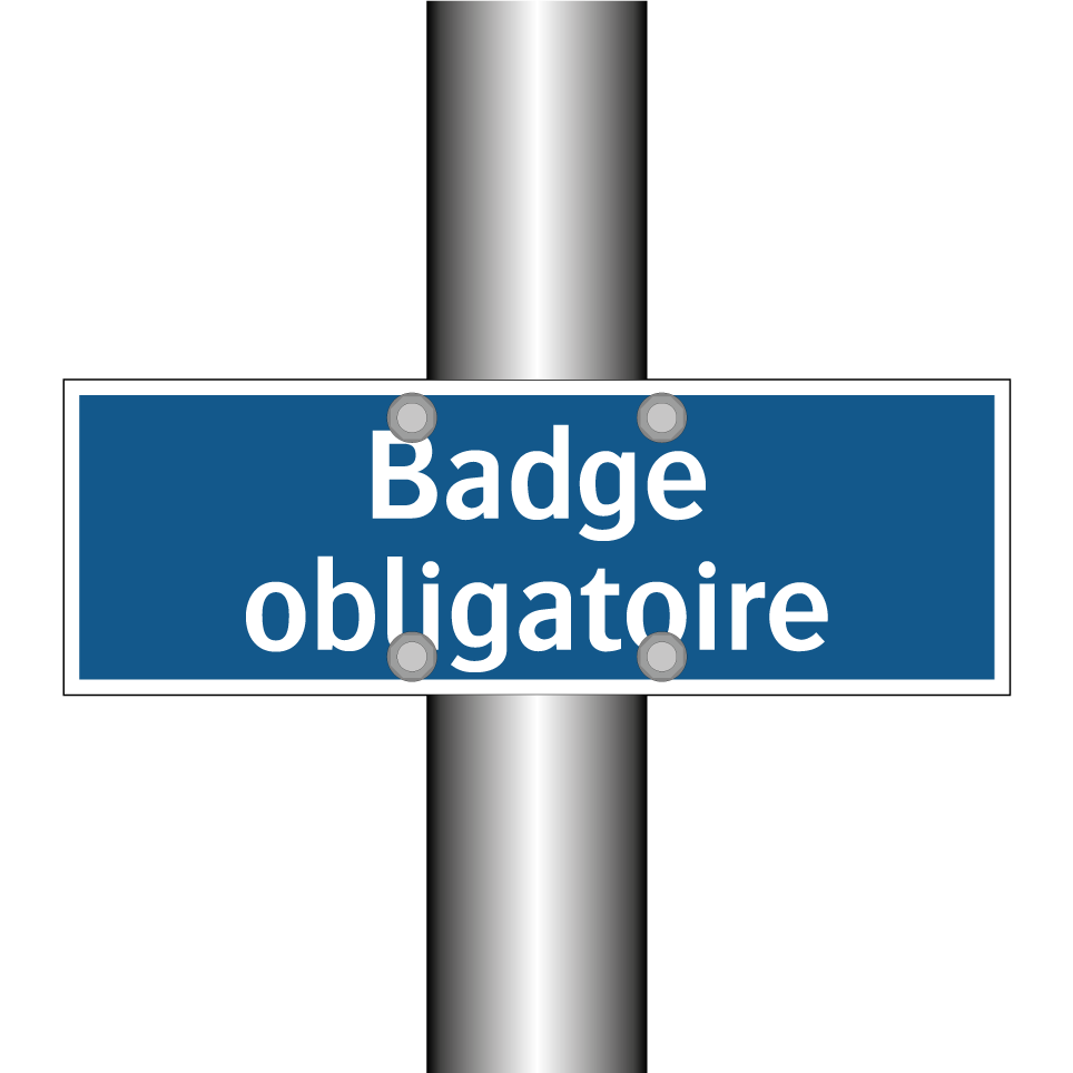 Panneau d'obligation avec le texte : "Badge obligatoire"