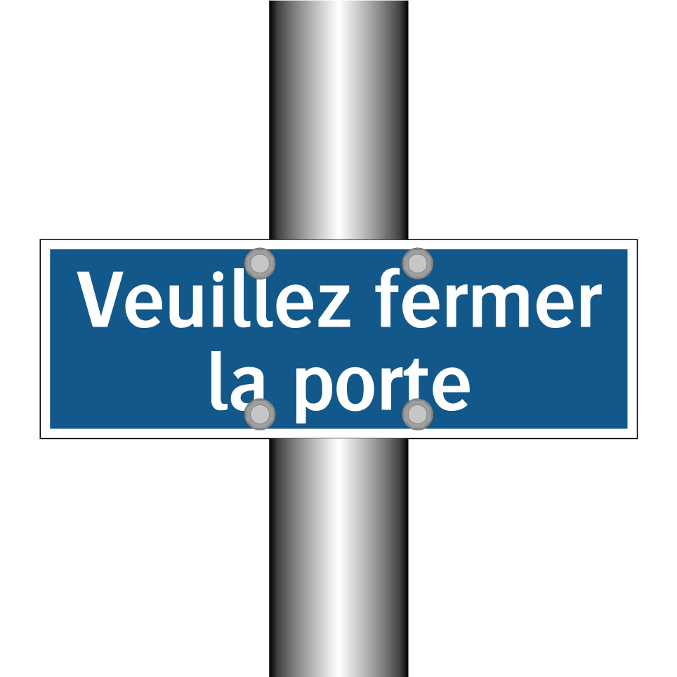 Panneau d'obligation avec le texte : "Veuillez fermer la porte"
