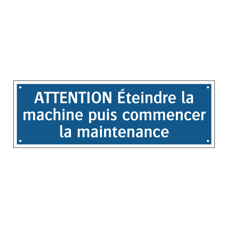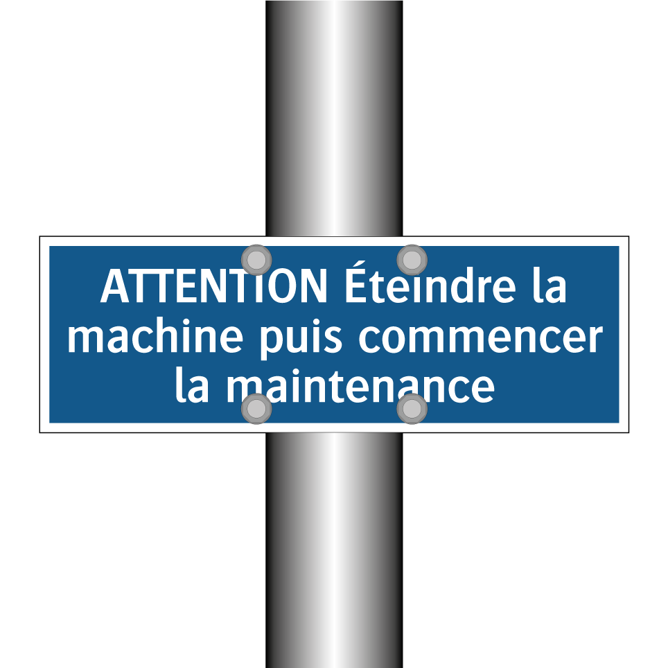 Panneau d'obligation avec le texte : "ATTENTION Éteindre la machine puis commencer la maintenance"
