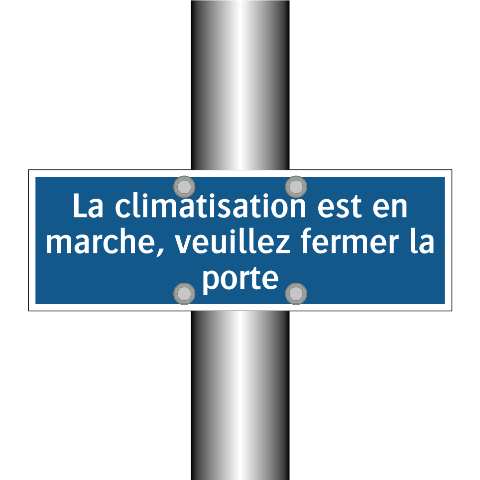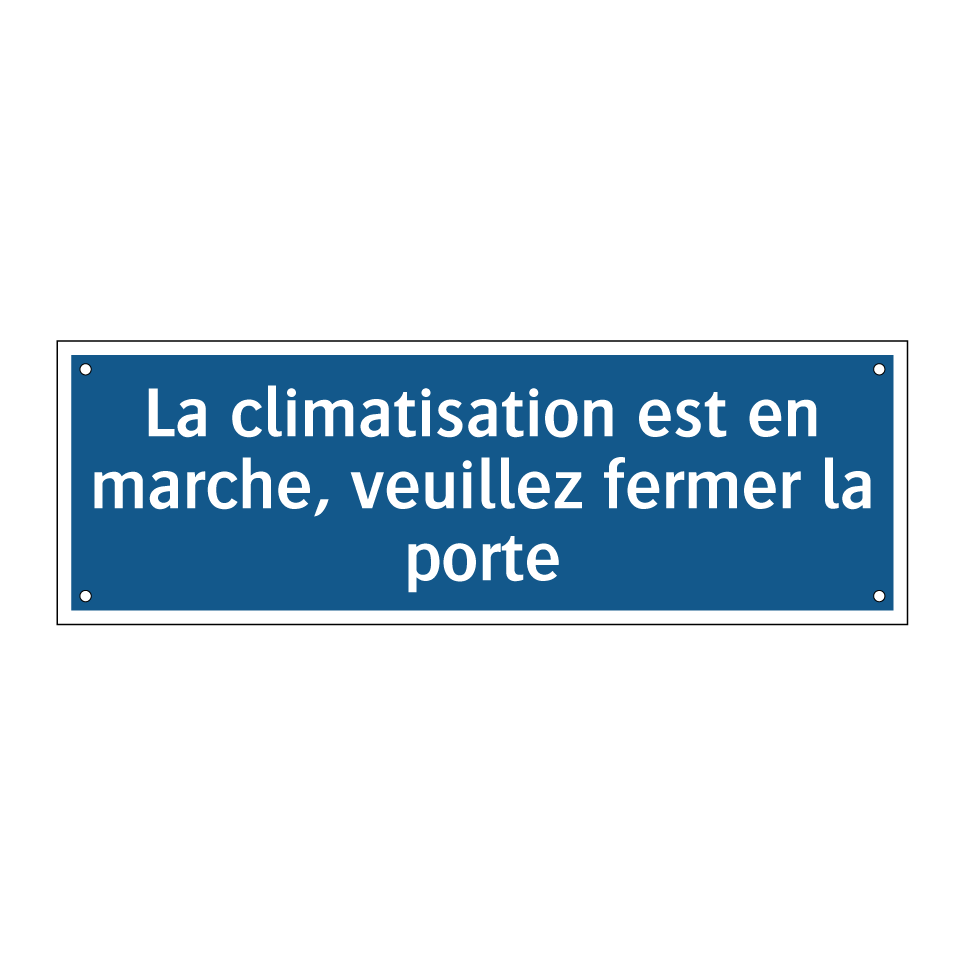 Panneau d'obligation avec le texte : "La climatisation est en marche, veuillez fermer la porte"
