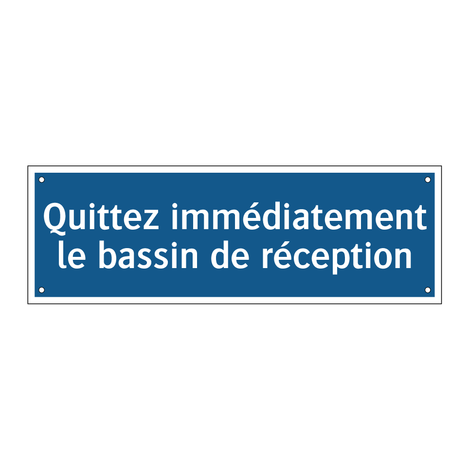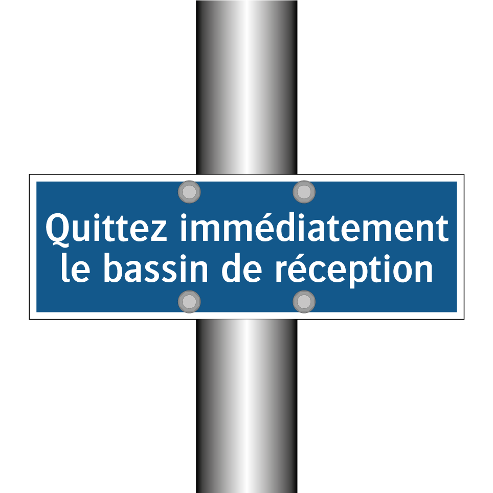 Panneau d'obligation avec le texte : "Quittez immédiatement le bassin de réception"