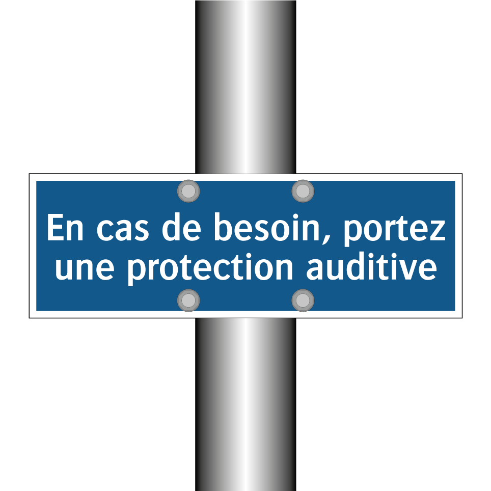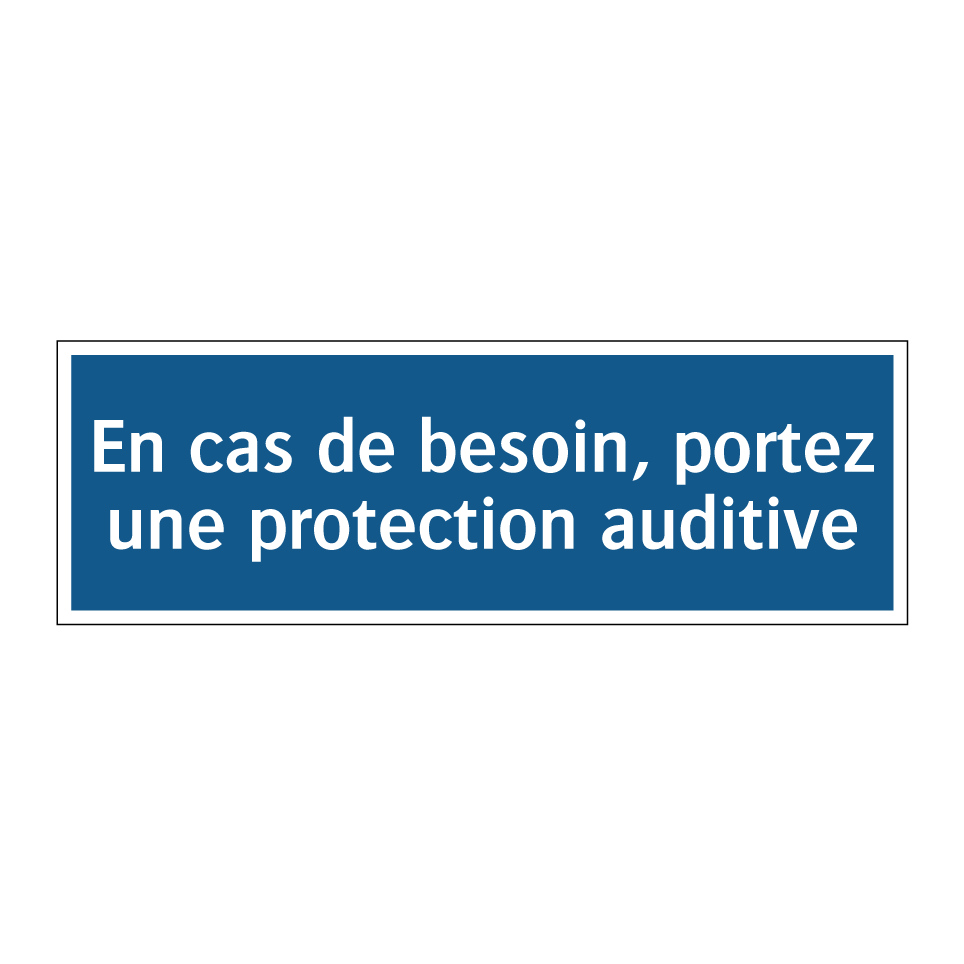 Panneau d'obligation avec le texte : "En cas de besoin, portez une protection auditive"
