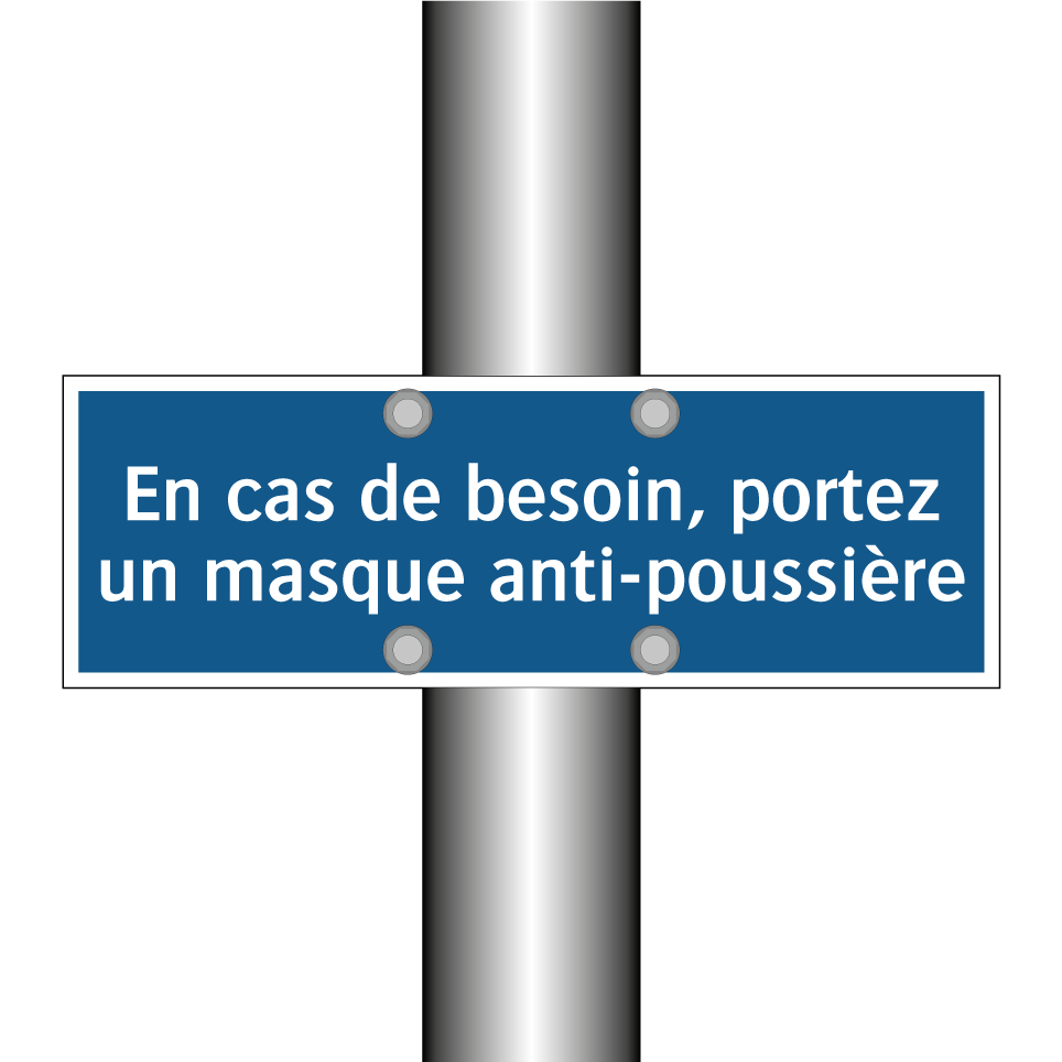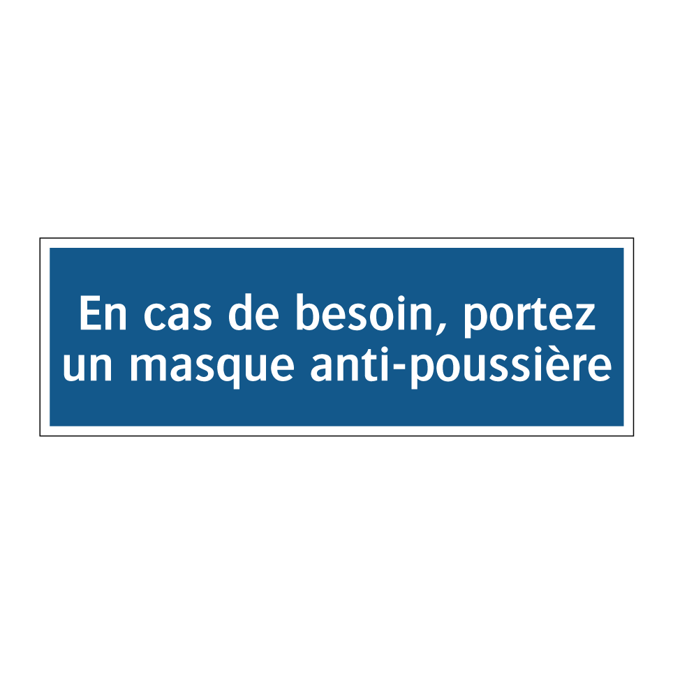 Panneau d'obligation avec le texte : "En cas de besoin, portez un masque anti-poussière"