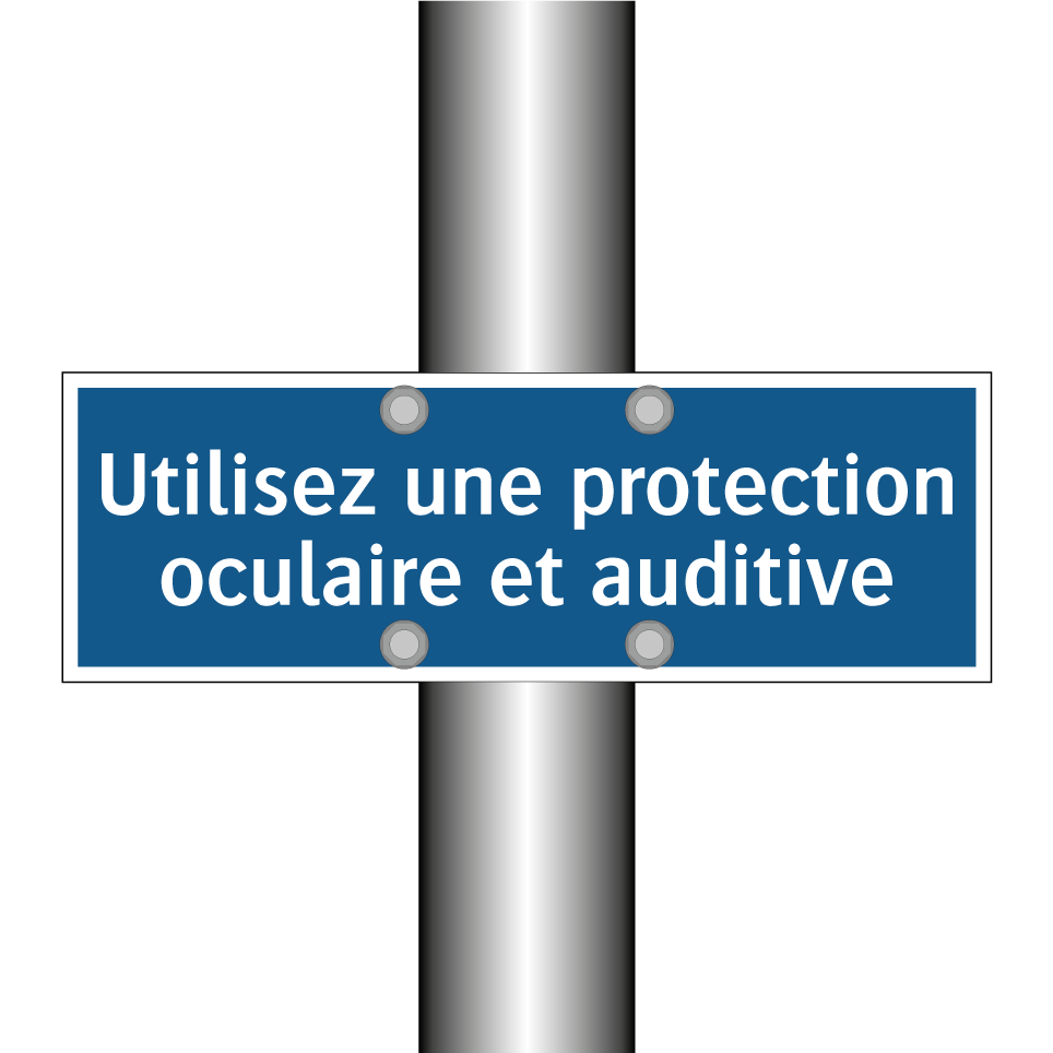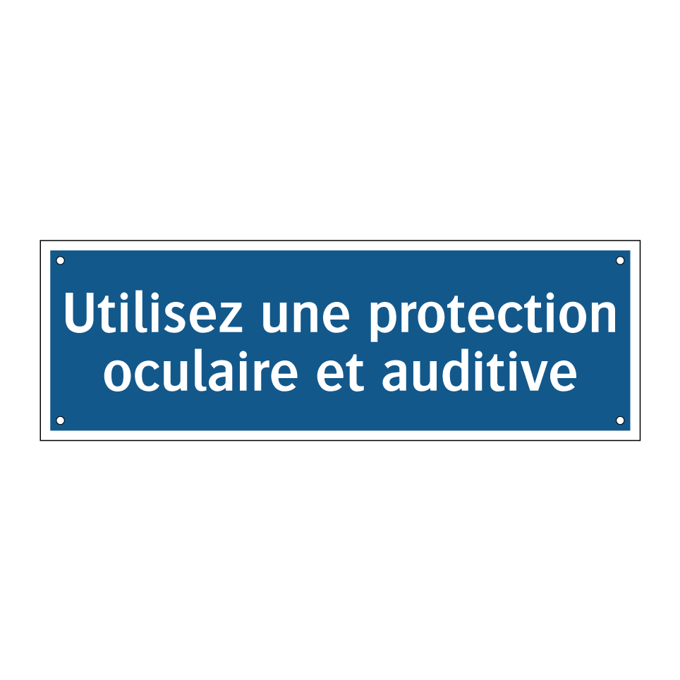 Panneau d'obligation avec le texte : "Utilisez une protection oculaire et auditive"