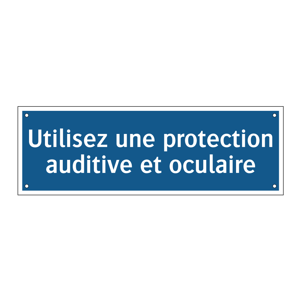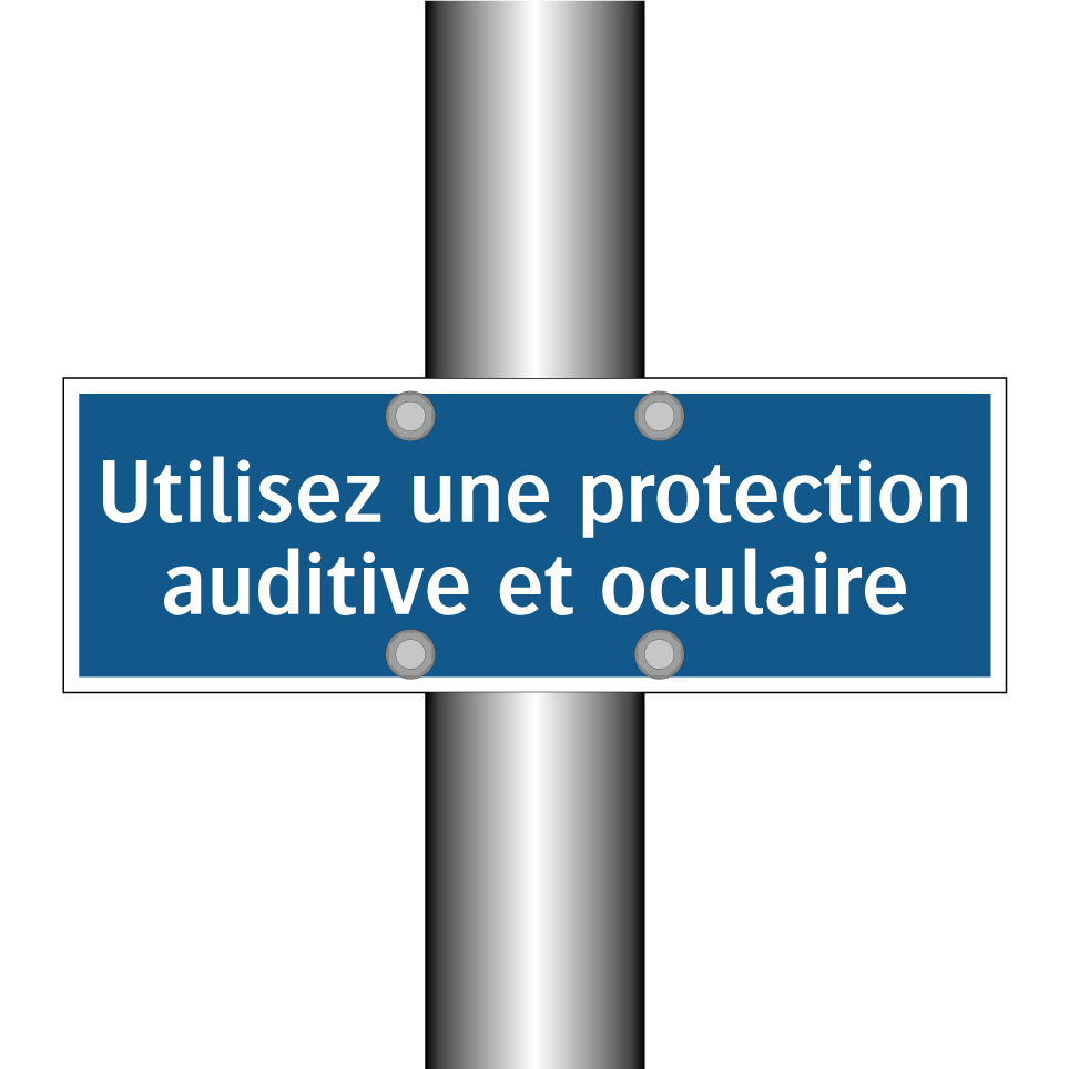 Panneau d'obligation avec le texte : "Utilisez une protection auditive et oculaire"