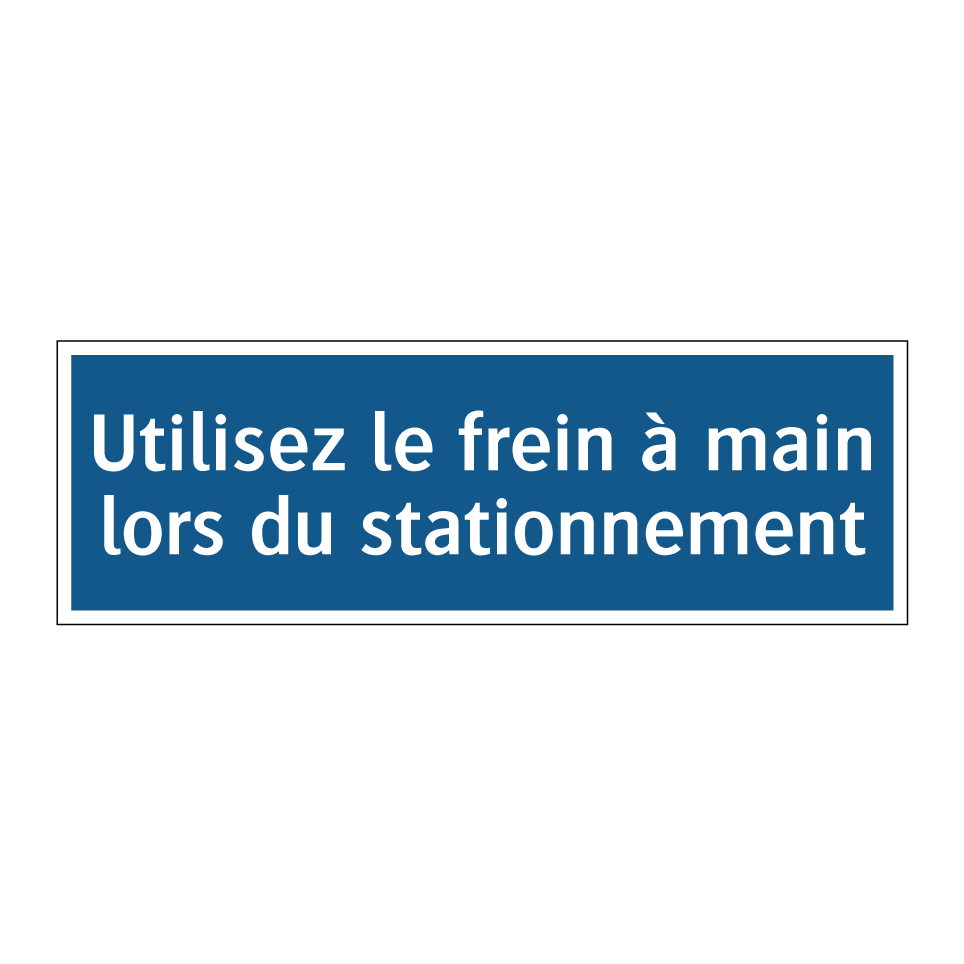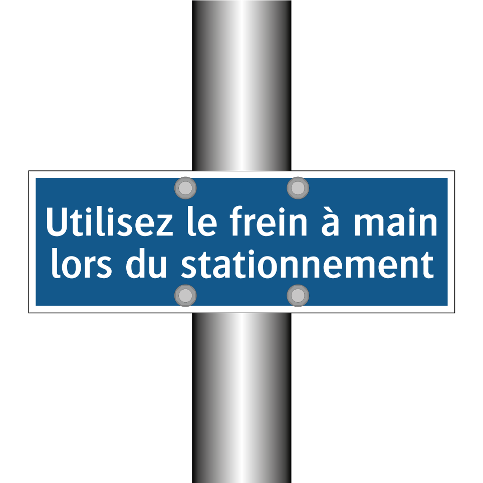 Panneau d'obligation avec le texte : "Utilisez le frein à main lors du stationnement"