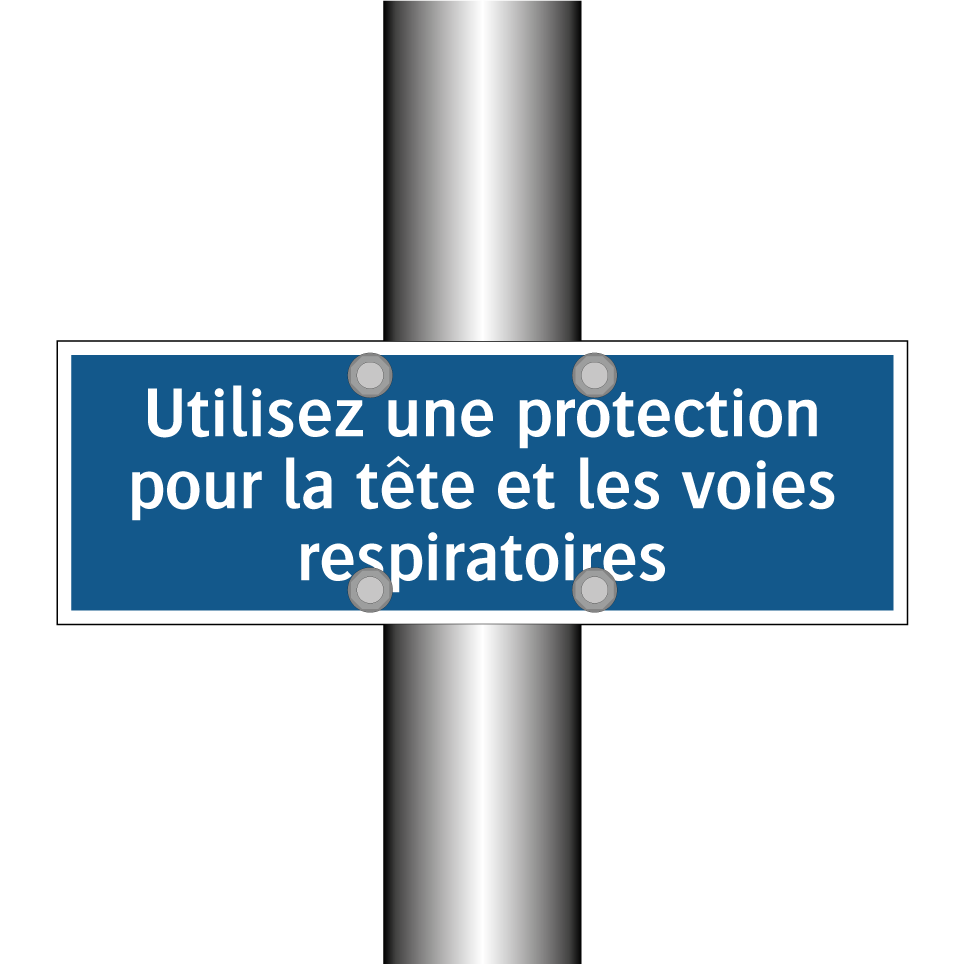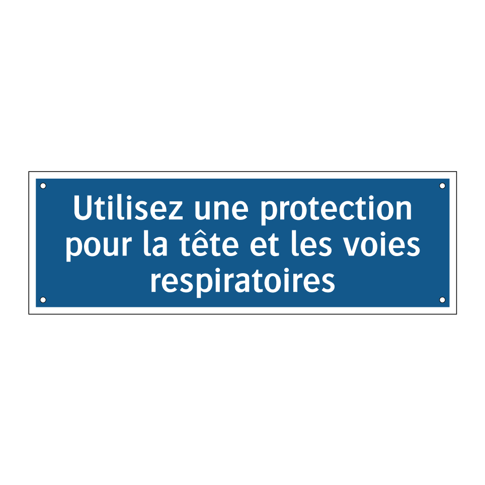 Panneau d'obligation avec le texte : "Utilisez une protection pour la tête et les voies respiratoires"