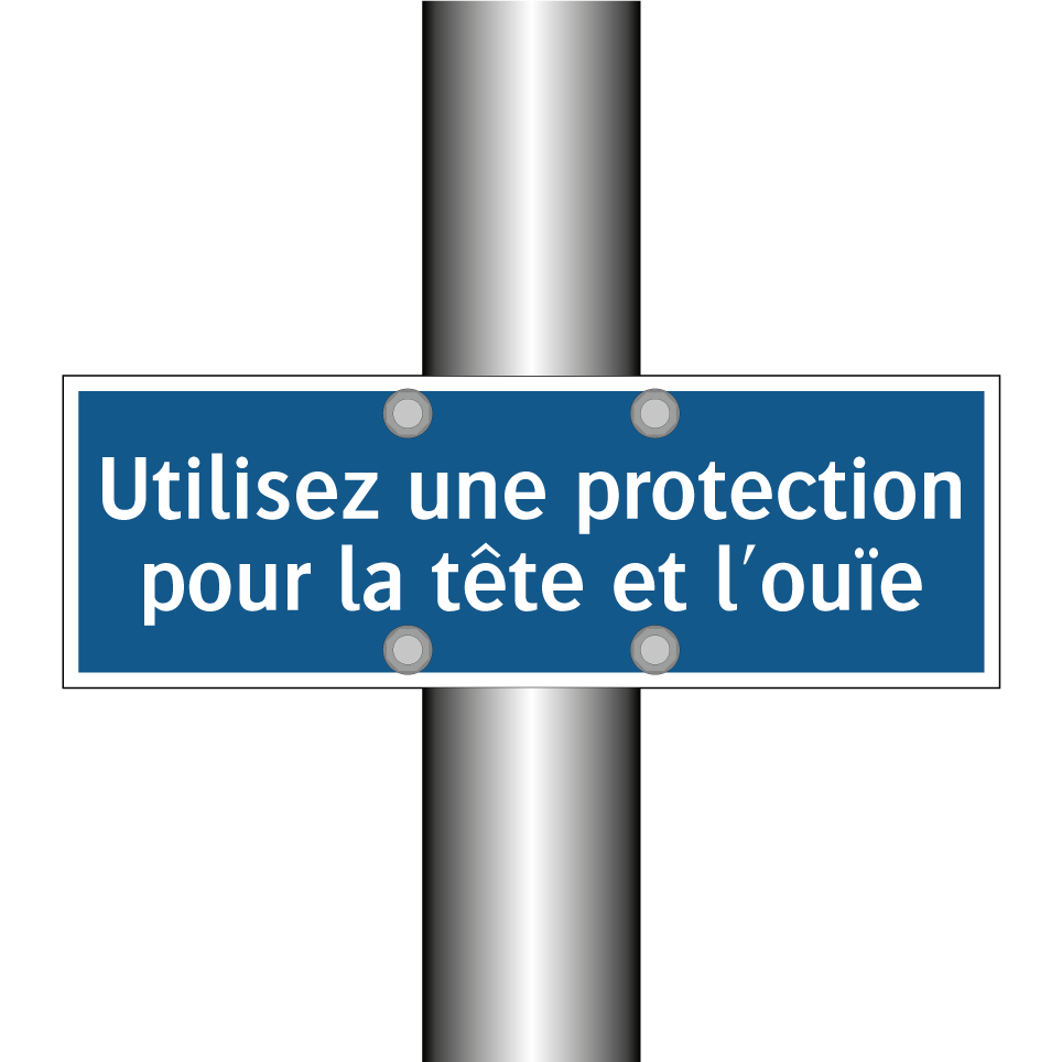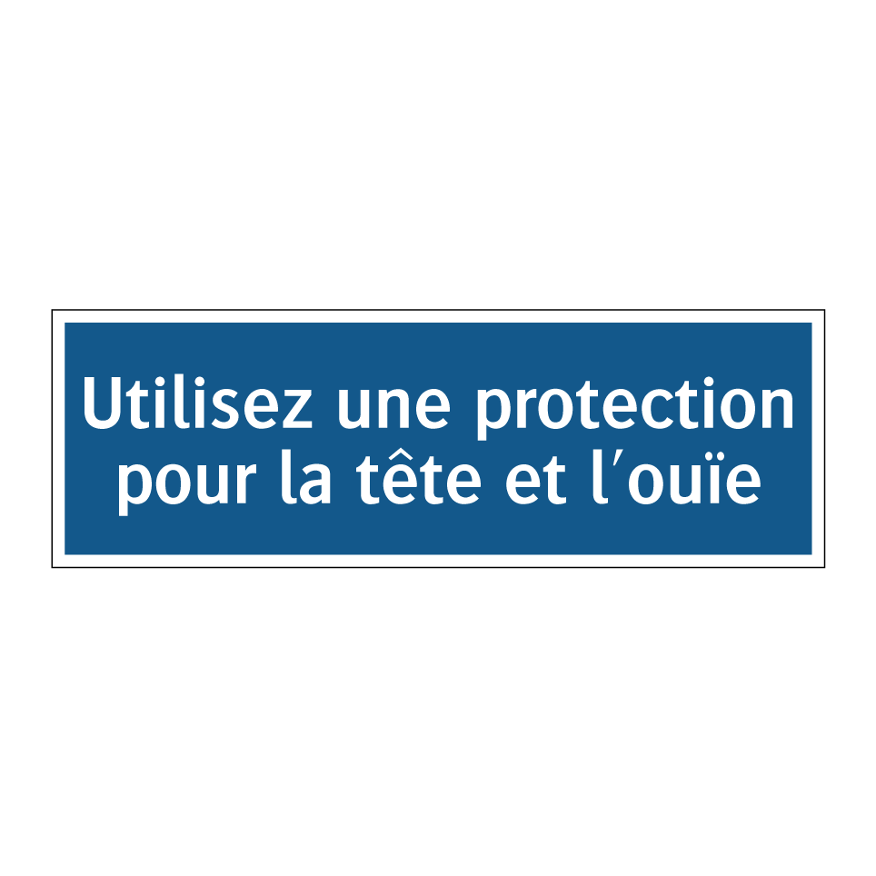 Panneau d'obligation avec le texte : "Utilisez une protection pour la tête et l'ouïe"