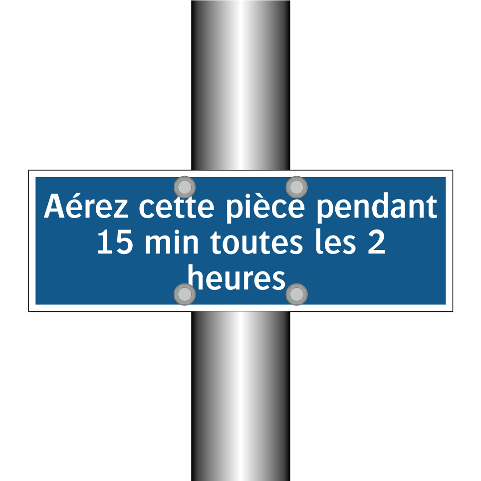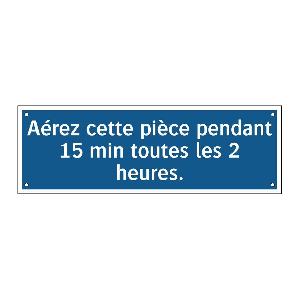 Panneau d'obligation avec le texte : "Aérez cette pièce pendant 15 min toutes les 2 heures."