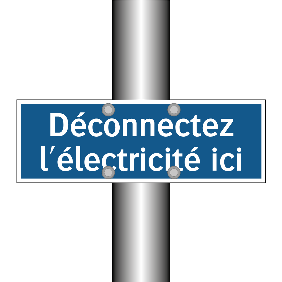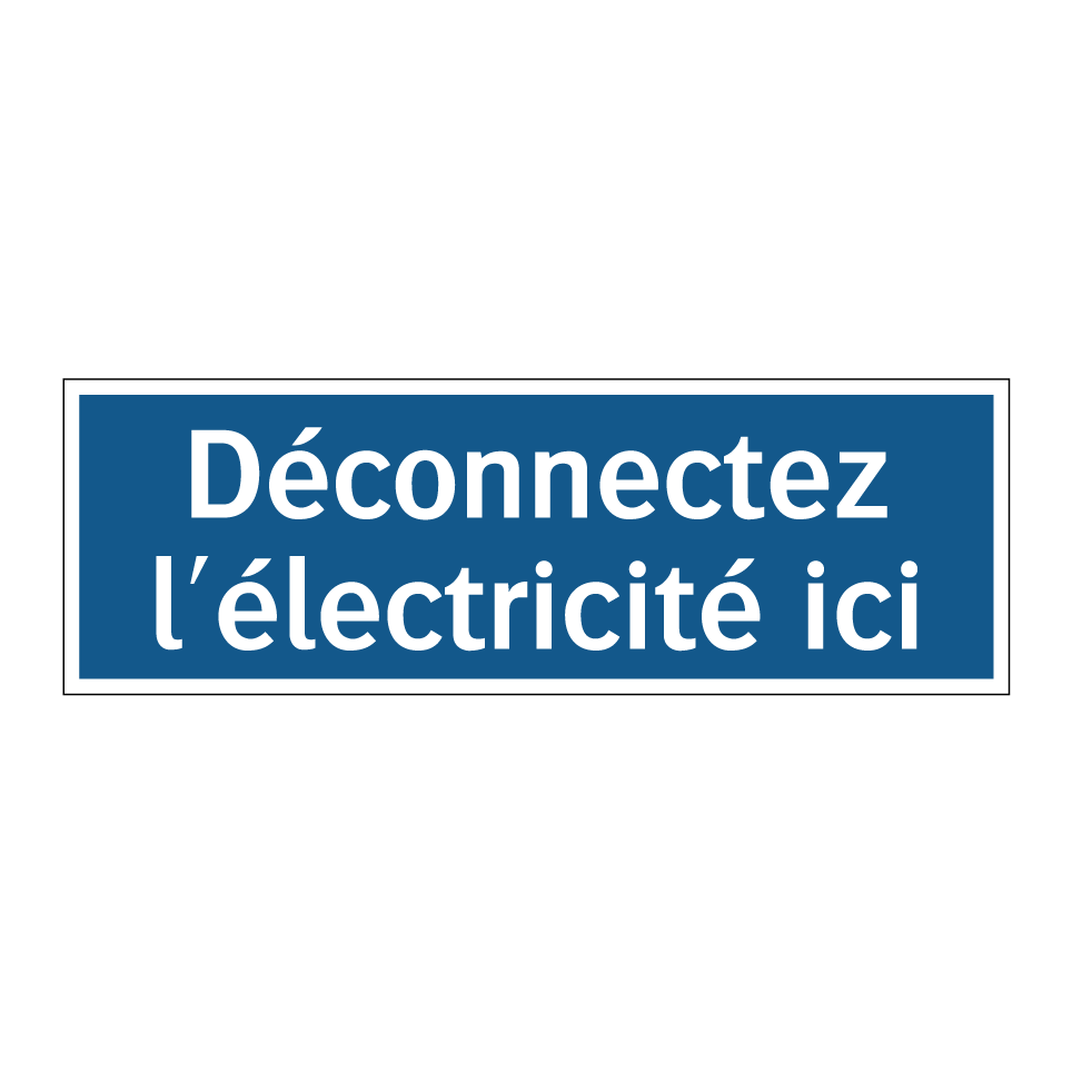 Panneau d'obligation avec le texte : "Déconnectez l'électricité ici"