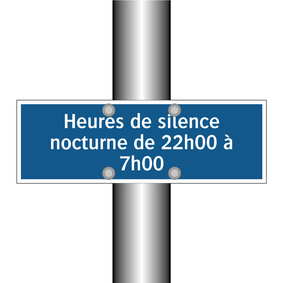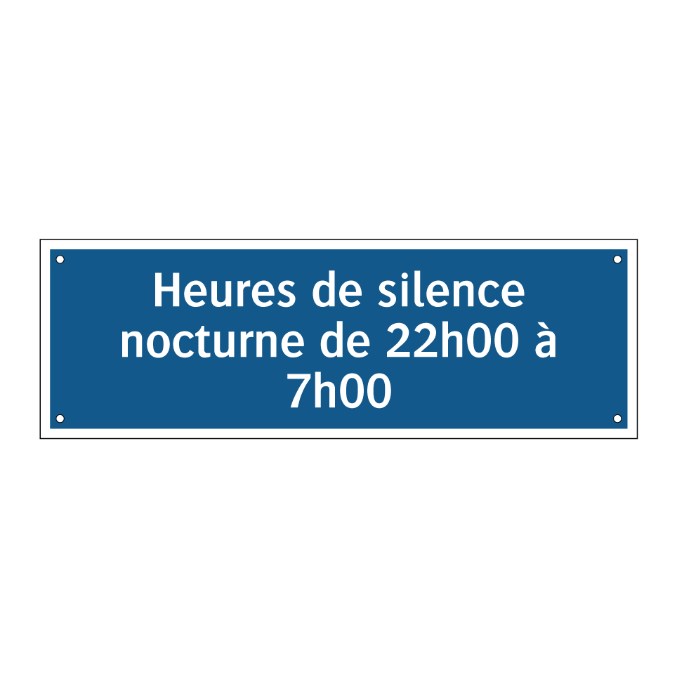 Panneau d'obligation avec le texte : "Heures de silence nocturne de 22h00 à 7h00"