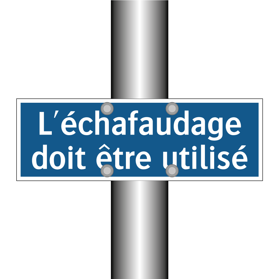 Panneau d'obligation avec le texte : "L'échafaudage doit être utilisé"
