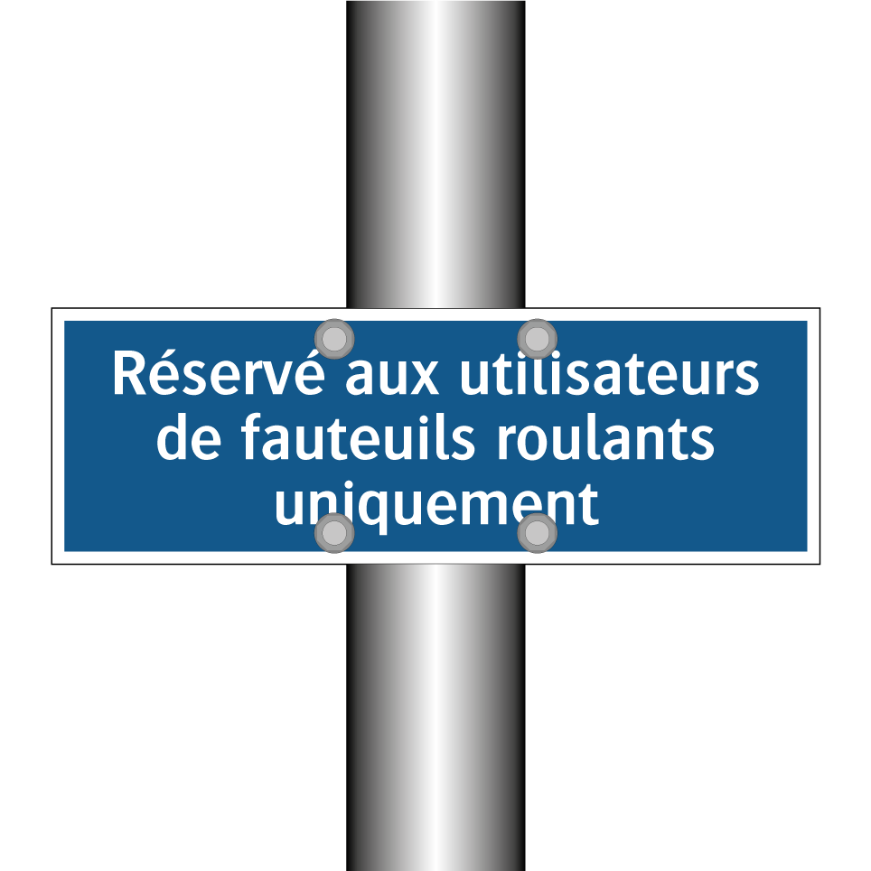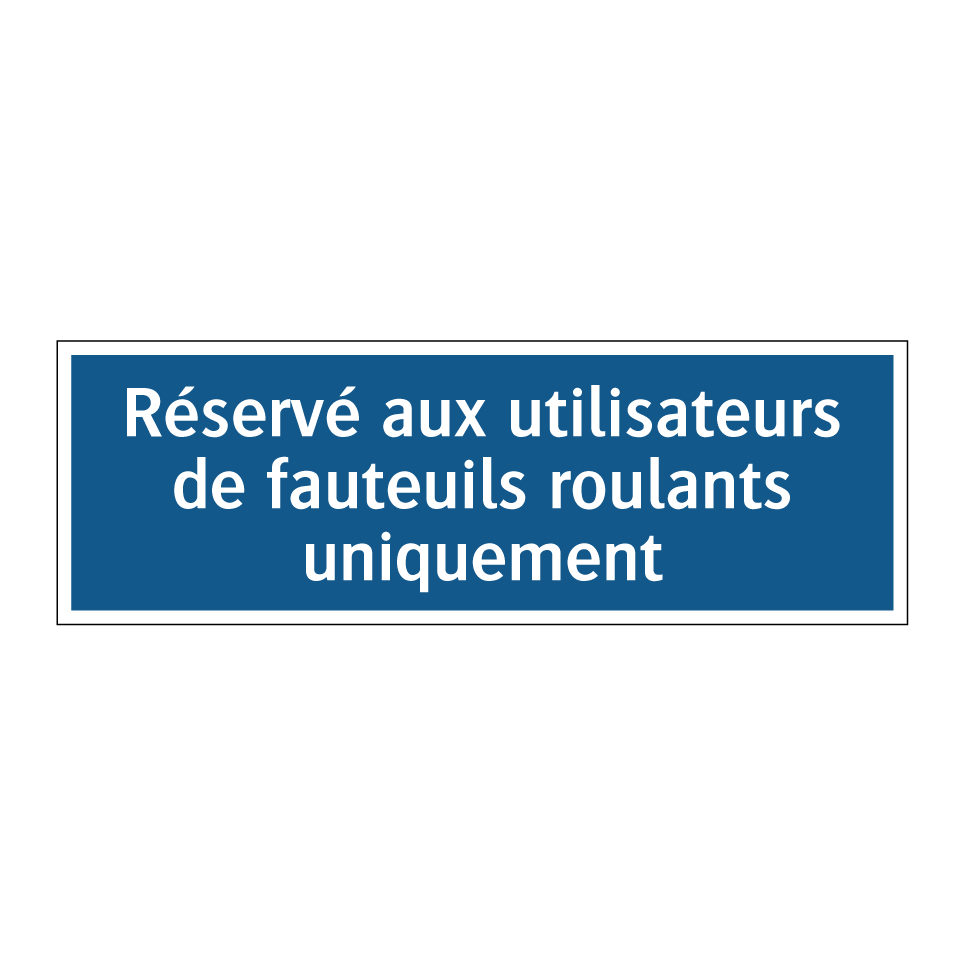 Panneau d'obligation avec le texte : "Réservé aux utilisateurs de fauteuils roulants uniquement"