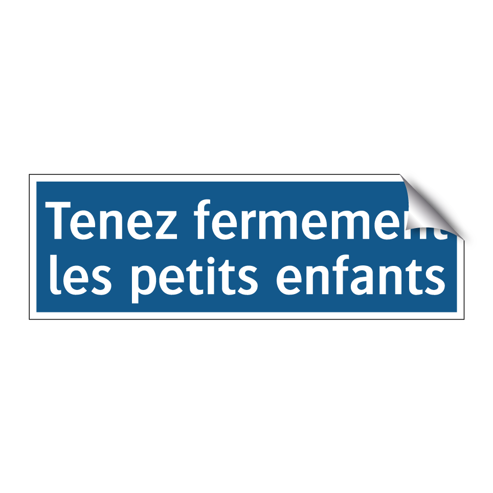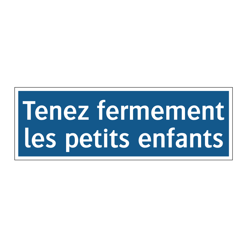 Panneau d'obligation avec le texte : "Tenez fermement les petits enfants"