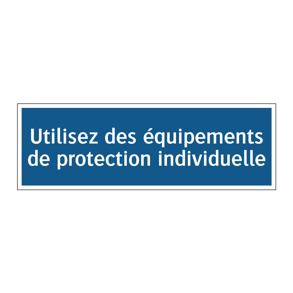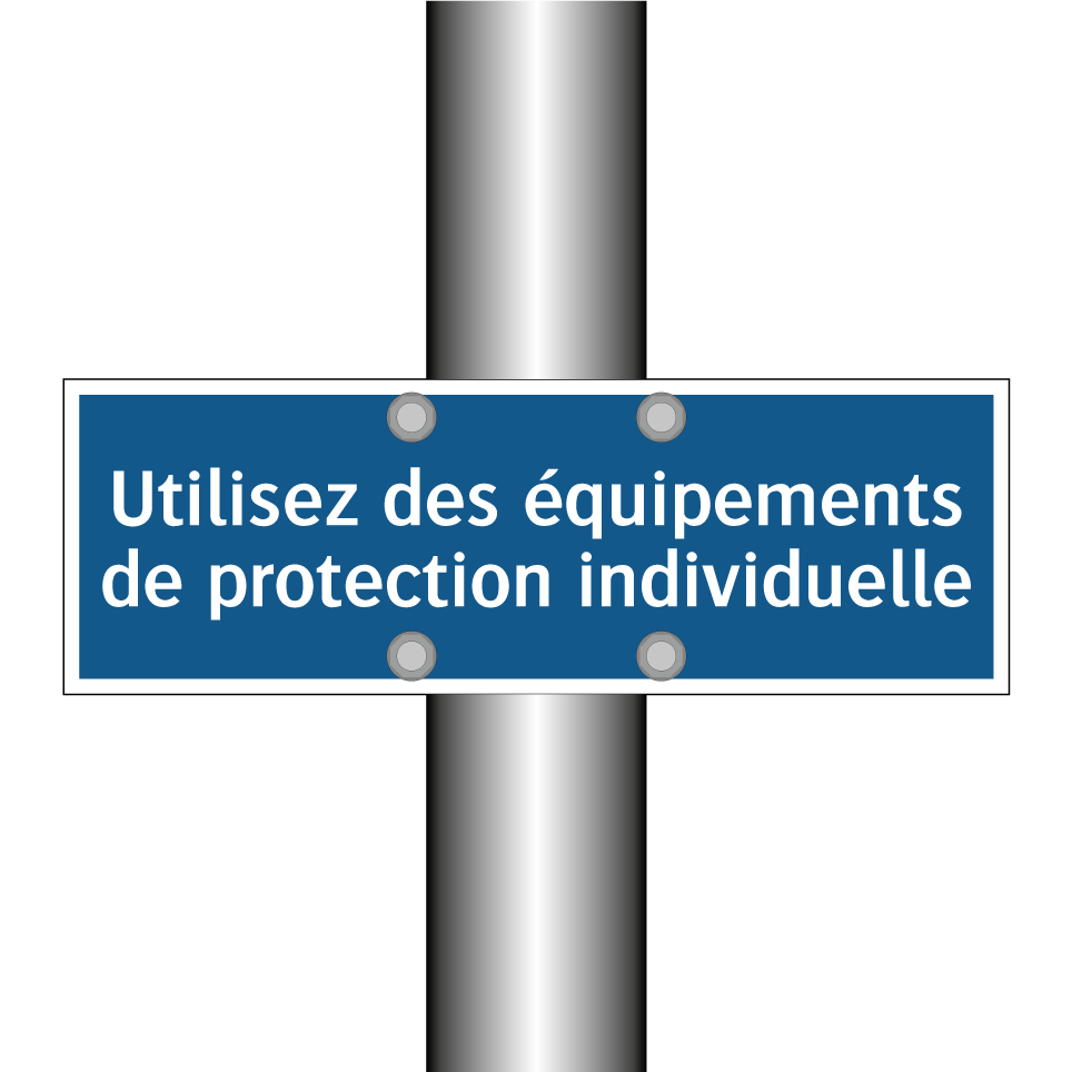 Panneau d'obligation avec le texte : "Utilisez des équipements de protection individuelle"